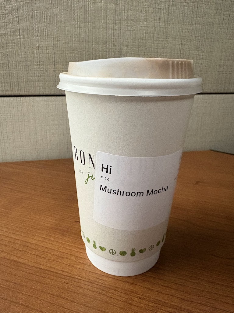 Got coffee here: the Mushroom Mocha. It was unique with the mushroom, there was a slight earthy flavor.
