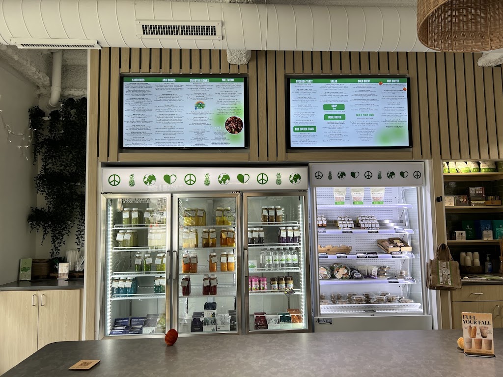 Serving healthy and quick smoothies, smoothie bowls, & cold pressed juice. Also offering light food options with a seasonal menu.
