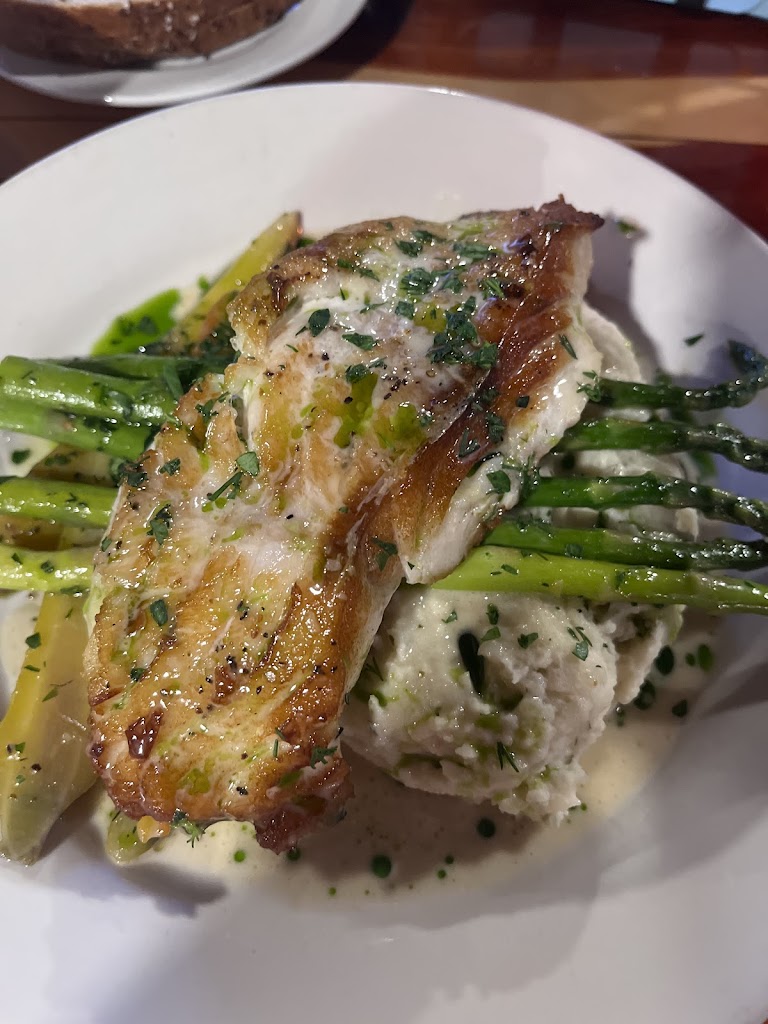 Fabulous grouper with citrus mashed potatoes, asparagus and beautiful purple and yellow carrots! It sure isn’t fancy, but the food is great, reasonably priced and the servers always friendly.