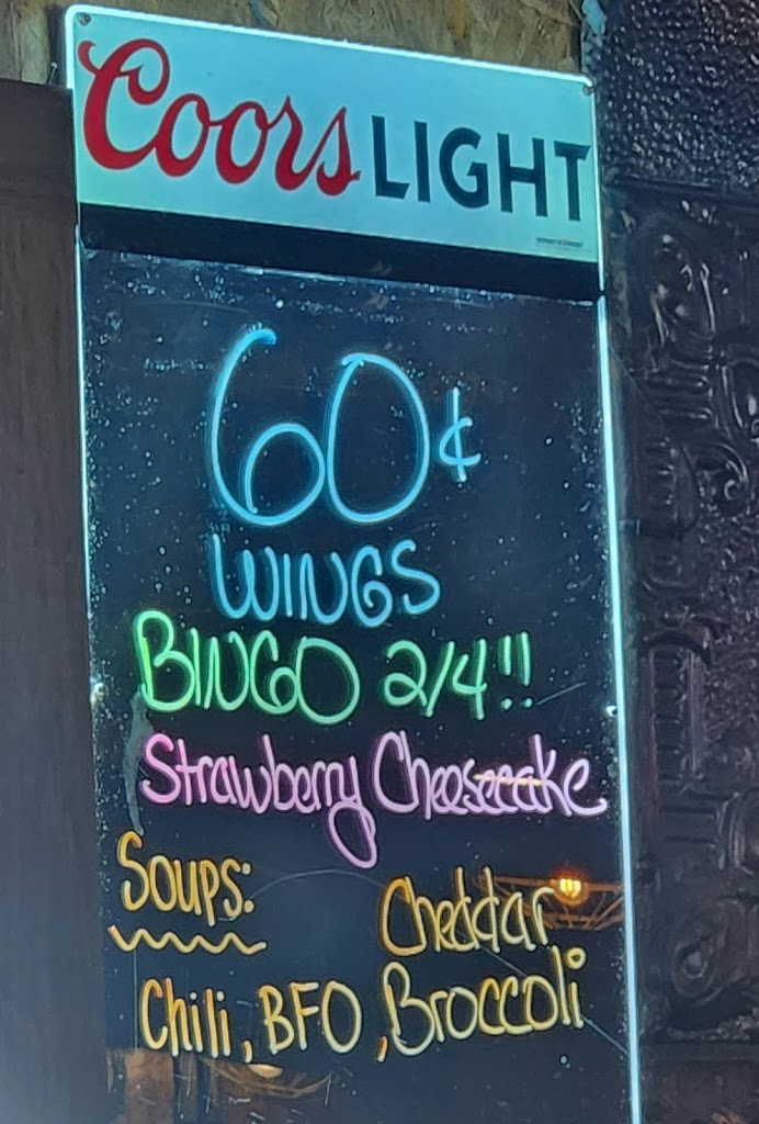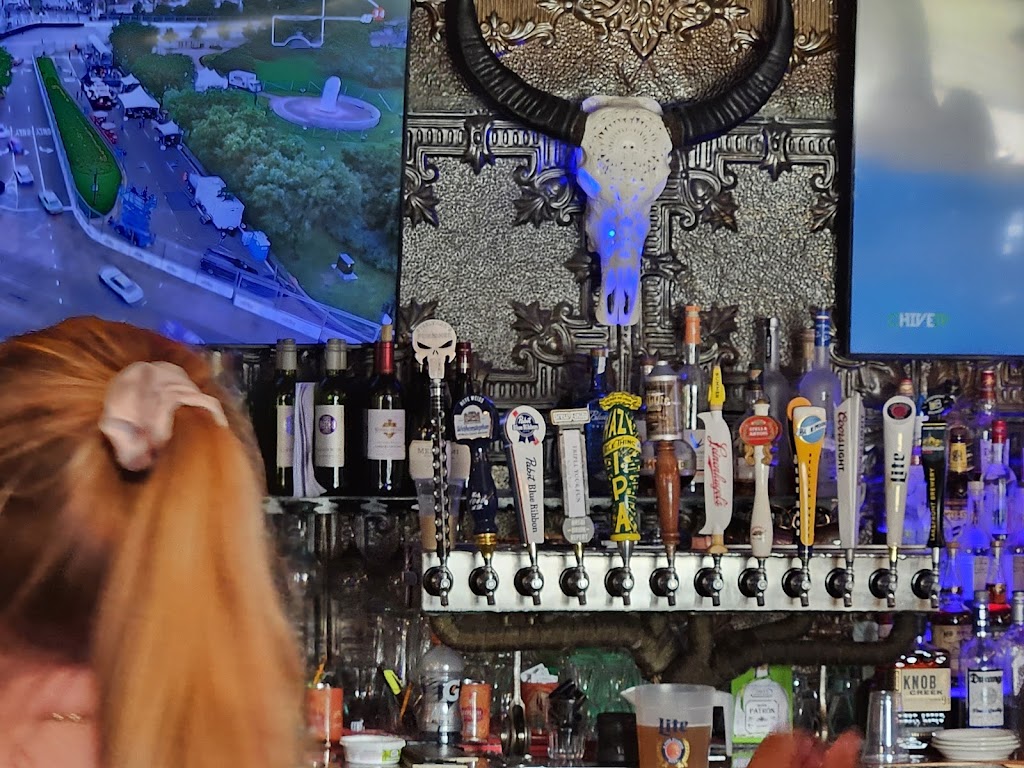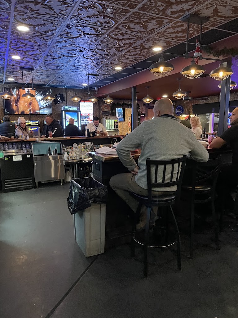 Really good food. Seriously beyond bar food, one of the best places to dine in the area. Decent variety on tap and cocktails atypical. Slots. Decent atmosphere; mix of local drinkers of all classes and those passing by. Great spot despite the vaguely offensive name.