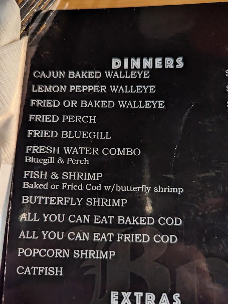 Friday night fish fry was about as miserable as you can find. Soggy, wet fish (frozen Canadian perch nonetheless) and black potato pancakes. Tasted like the grease hadn't been changed in days.