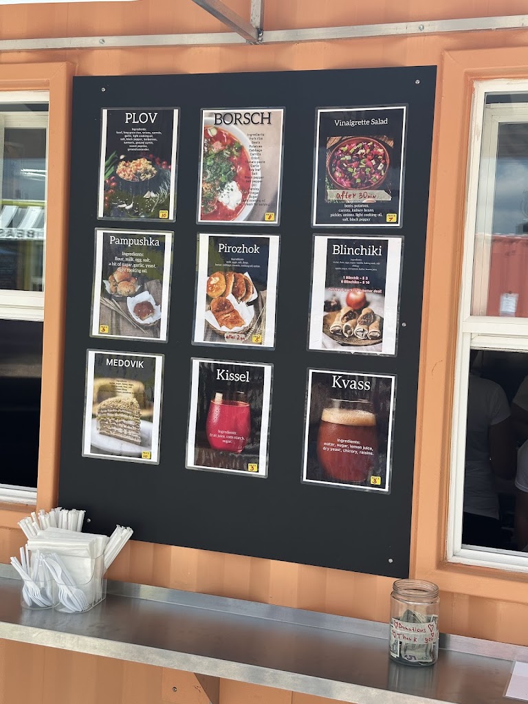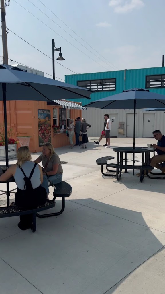 This was our family's first time not only at The Borsch House, but eating Ukrainian cuisine in general and all was wonderful!! Professional service, very clean facility, and the food was quite delicious, flavorful, and fresh. I appreciated that the menu included an explanation of each item, as these dishes were all new to me. I wasn't sure how my young, picky kiddos would do, but once I convinced them to try the food, they were pleasantly surprised. The Container Yard itself is a unique experience. There are restrooms, a drinking fountain, a decent amount of seating on the patio, a sand volleyball court, and air conditioned seating overlooking "the yard." We will be returning to The Borsch House in the future and definitely recommend this restaurant!