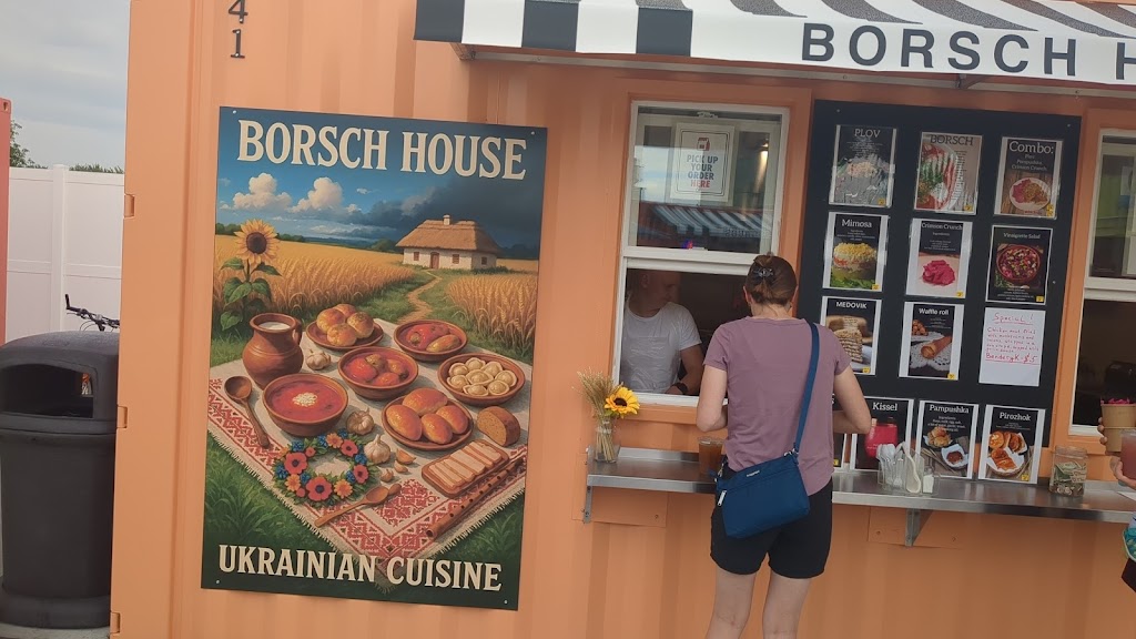 The Borsch House is a family-owned Ukrainian restaurant located at The Yard in Altoona, Wisconsin. We offer freshly made traditional dishes like borsch, varenyky, pelmeni, plov, blini, waffle rolls, vinaigrette, mimosa salad, kvass, and kissel. Everything is made from scratch with natural ingredients, bringing the taste of Eastern Europe to Western Wisconsin. Quick, hearty, and full of flavor — it’s comfort food done right.