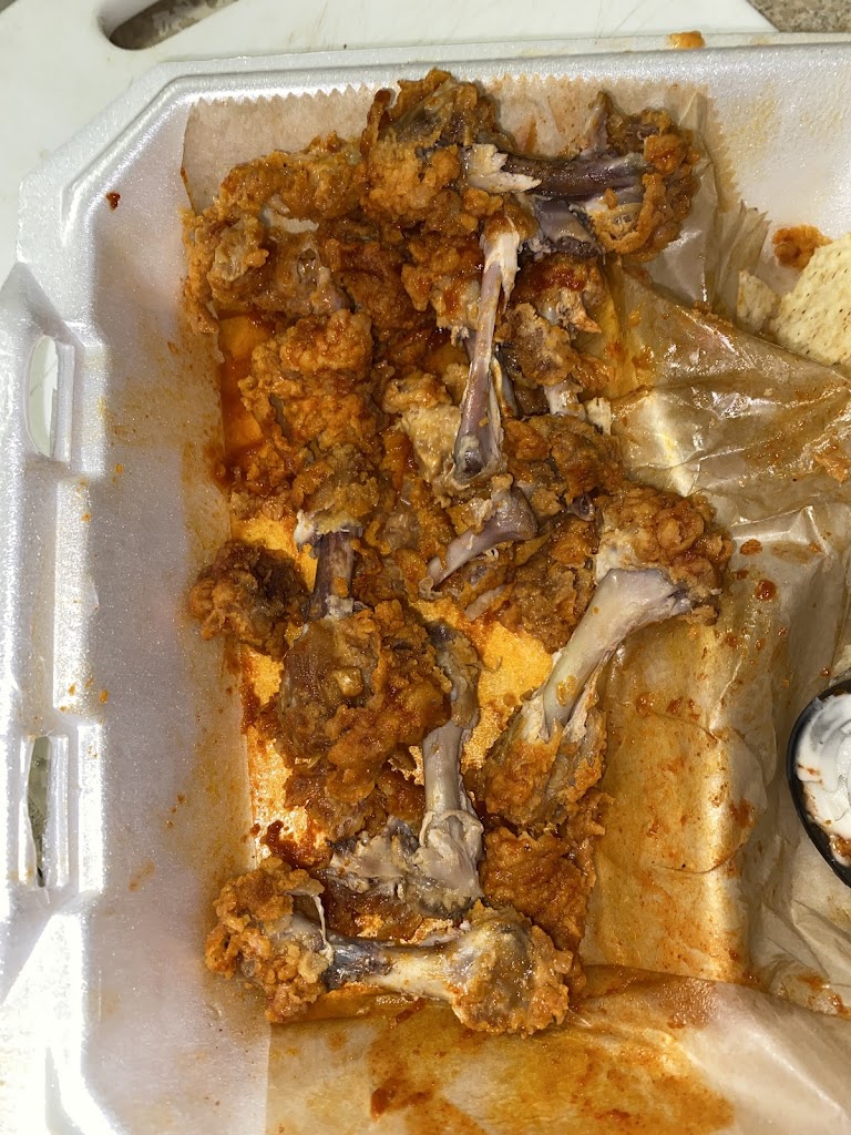 Got some chicken wings (hot) sauce was great but the wings are mostly just breading n hardly any chicken on them. I’m hopeful about the other food (sandwiches n hotdogs) they have tho i’ll try next time. (photo-all that breading) Guy at the counter was super nice tho.