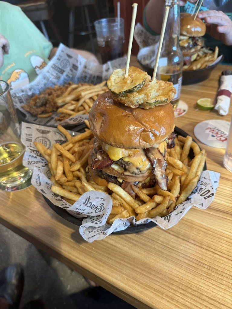 Amazing food (especially the May burger of the month), Bloody Mary’s /margaritas , and the ambiance. The younger staff are super nice, but it doesn’t excuse some of them for leaving every round of drinks sit on the bar for 10 minutes (blended drinks) while they huddle at a table to talk and on a different occasion try to press water on you after one tap beer with dinner.