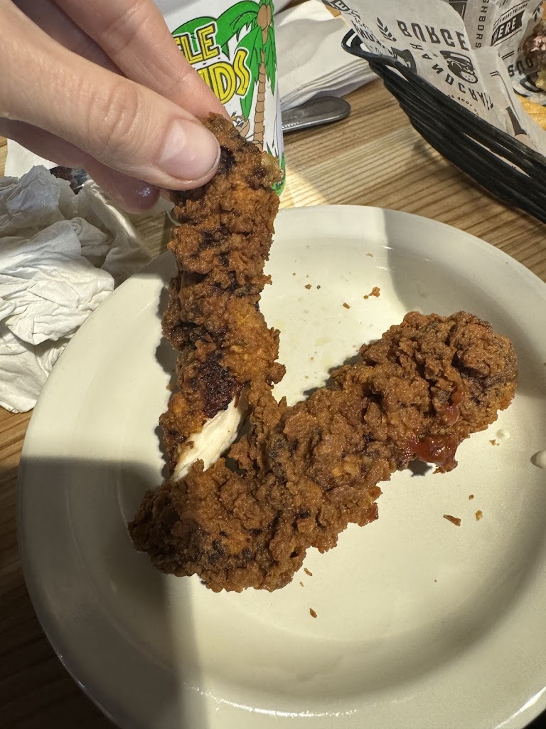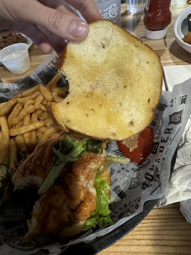 0/10. I would not recommend this place to anyone. Everything wrong just completely stacked up. Fried pickles were all stuck together with raw batter between the pickles, and seemed to be barely drained of the oil. I asked our waitress for a new one. We waited for a new one, but our food ended up coming out. I asked the waitress about the pickles and told her I no longer wanted them because my children were just going to eat their dinner at that point. Despite saying so, the pickles still came out and I still had to pay for them even though no one ate them. I got the hot honey chicken sandwich and asked for no hot honey on the chicken and the horseradish topping to be on the side. Mine came out with the hot honey sauce on the chicken, the bun not toasted, the greens on it were discolored, and it was so dry I had to take the top bun off because I could barely chew it. Two of my children got the cheese burger kids meal. Both burgers had the meat cut completely in half to I assume check for doneness, but made my children’s cheeseburgers completely dry and then with cold fries. My other child had the children’s chicken strip and the chicken strips were burnt. To my COMPLETE SURPRISE the manager who came to the table told me “yea I’m sorry they SOMETIMES come out like that”! WHAT! My children are humans too and do not deserve burnt food. I asked about the “fresh fruit” that was going to come with the chicken strip kids meal, and the waitress told me it was a Dole fruit cup with the peaches and cherries. It was definitely not fresh fruit nor was it the one with peaches and cherries. It was a tropical one with pineapple, which my son cannot even eat pineapple. To top it all off, my one child was eating her cheeseburger and a medium length brownish-blonde straight hair gets pulled from the food she was chewing in her mouth. We immediately stopped and I asked for our bill to leave. When the manager came over to tell me that sometimes the chicken strips do come out burnt, she brought us two 10$ gift certificates that expire in one month. I did tell her to give them to my sister, who was eating with us, because I would absolutely not be back. Very little food was actually eaten. No one offered to fix anything or comp anything for burnt food that was not touched or hair. I absolutely want my money, I was unable to stand my ground for not paying for garbage food and I should have taken my kids and left but my husband is on military orders and it’s hard enough dining out with three small children.