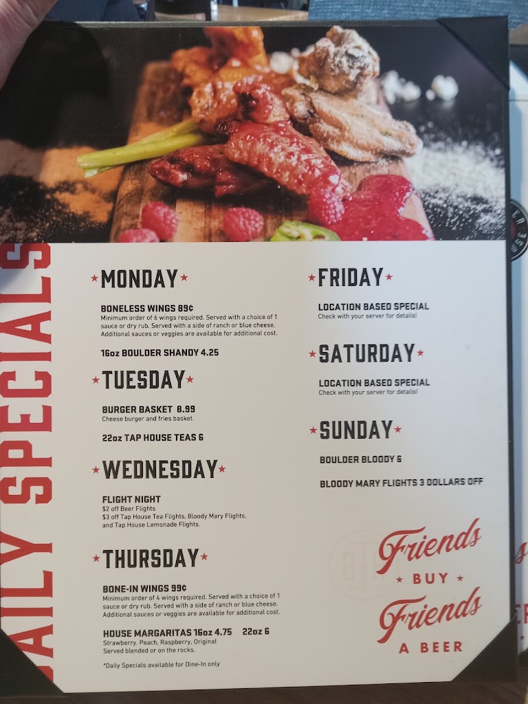 Boulders offers burgers, sandwiches, and chicken wings as a part of their regular menu. We had their 89 cent boneless wings (the Thursday special) and they were great.