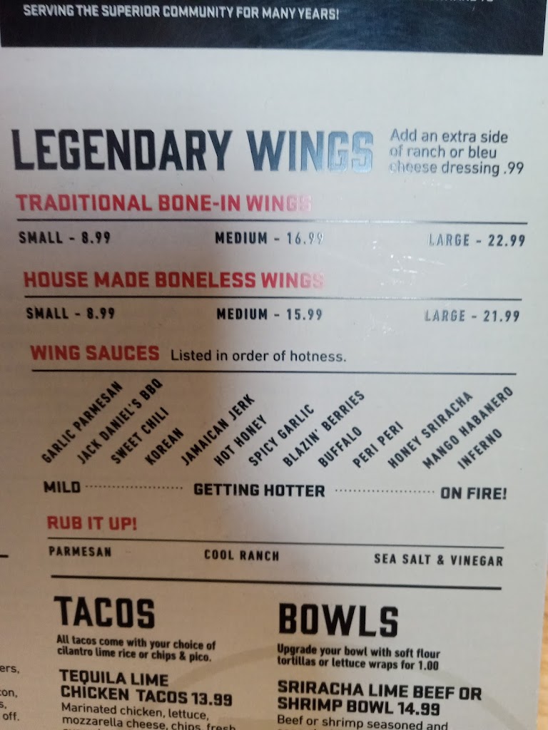 Came to celebrate a family member’s birthday. Food was just ok but the service was terrible! Had to get up and get our own to go boxes and basically beg the waiter for anything we needed including to order and our bill! Some people were just getting up and leaving! It’s to bad because it’s a great location and serves items other than pizza which seems to be the main dinner in Superior!