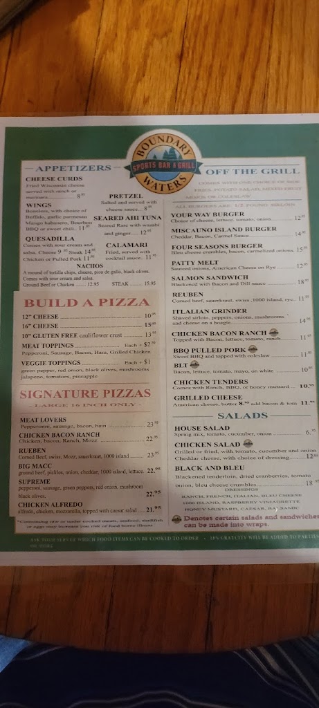 Boundary Waters Bar & Grill provides a relaxed atmosphere like you'd find in any nondescript but welcoming sports bar. TV's on display showing local, regional and national sports, pool table and live entertainment on the weekends.