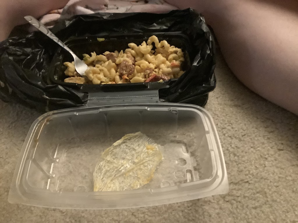 We didn’t dine in We Door dashed but my wife found this piece of plastic wrap in her Cajun Mac and cheese and needless to say isn’t hungry anymore. My question is… How does this get into Mac and cheese and no one notice or care enough to at least take it out? Also where did it come from? Makes her missing fries weather that’s the dasher fault or the restaurants seem minor.