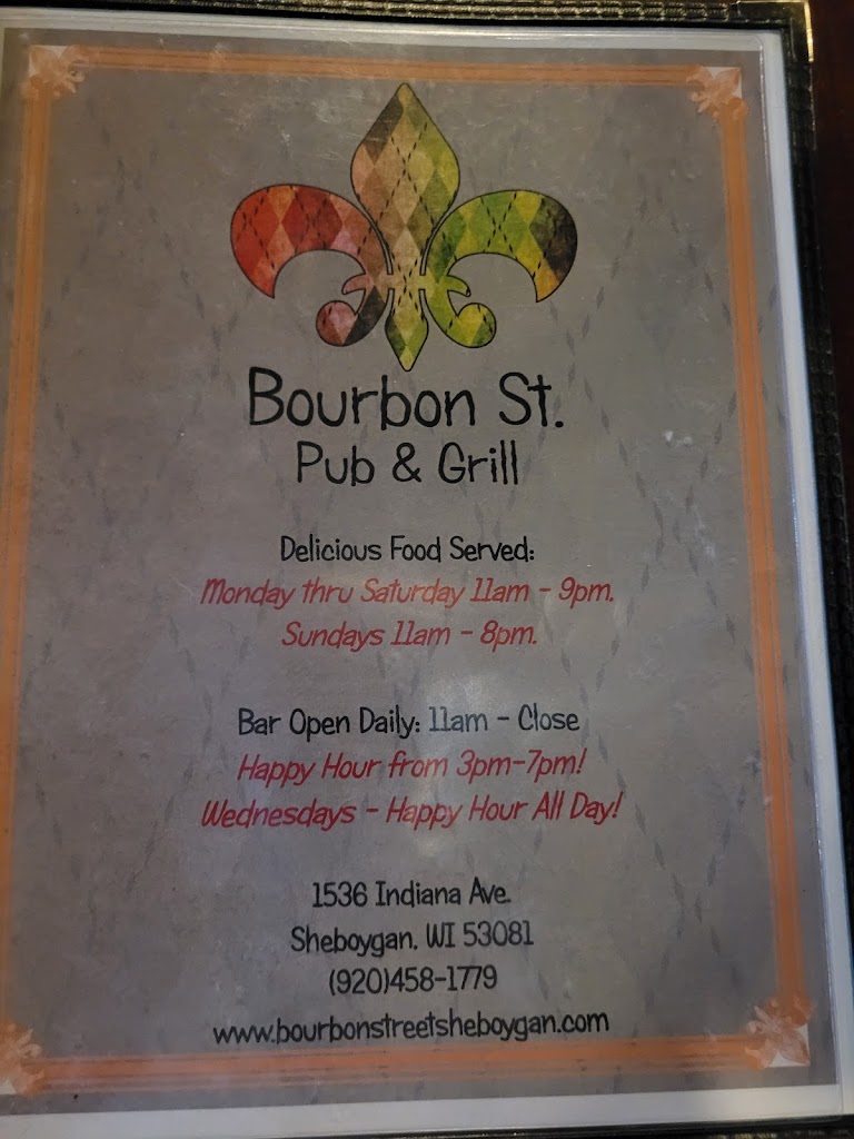 After hiking I got to go to this restaurant today. This is called Bourbon Street Pub & Grill in Sheboygan on the way home from Point Beach and I thought the food here was really good and would love to back again in the future.