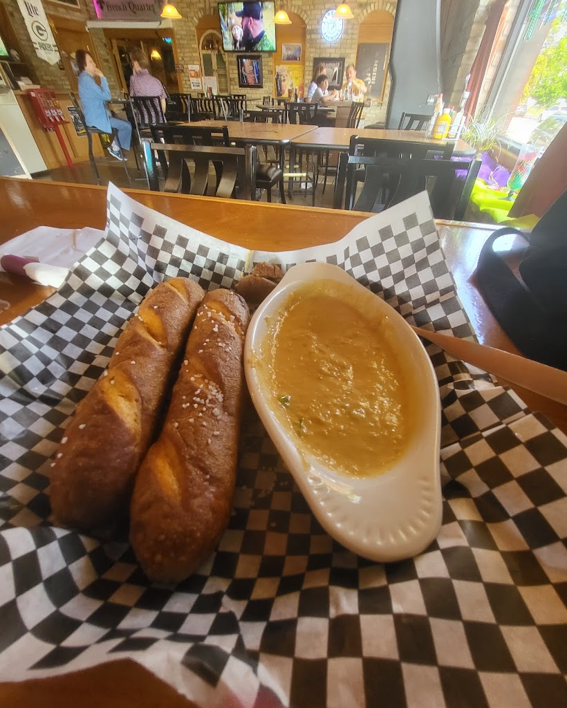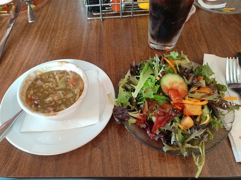 Good experience at a New Orleans style place. Two of us had the New Orleans bowl and one had the Philly steak. We also had the meatball soup, chicken chowder and hush puppies. All were pretty good! Our waitress was attentive and the atmosphere was clean and chillax.