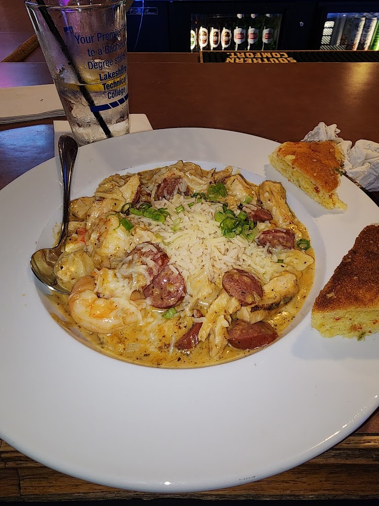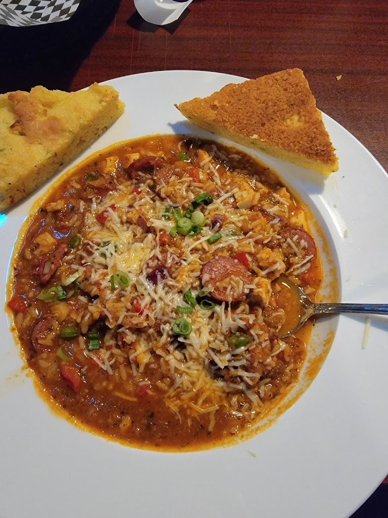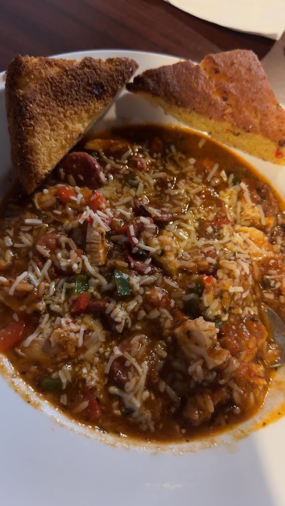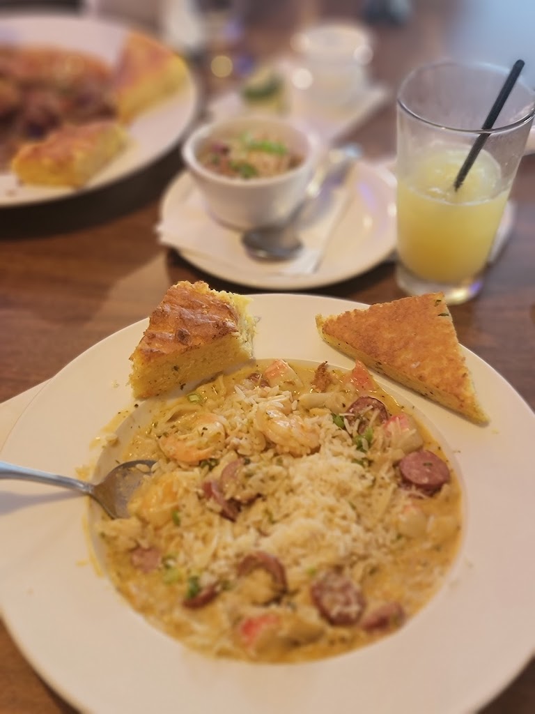 Absolutely amazing food—everything was impressive. We had jambalaya and southern spiced chicken, both wonderful, asparagus cream soup (perfect!) loved the cornbread it was dense and soft. Super sweet staff. Couldn’t recommend this place more highly!