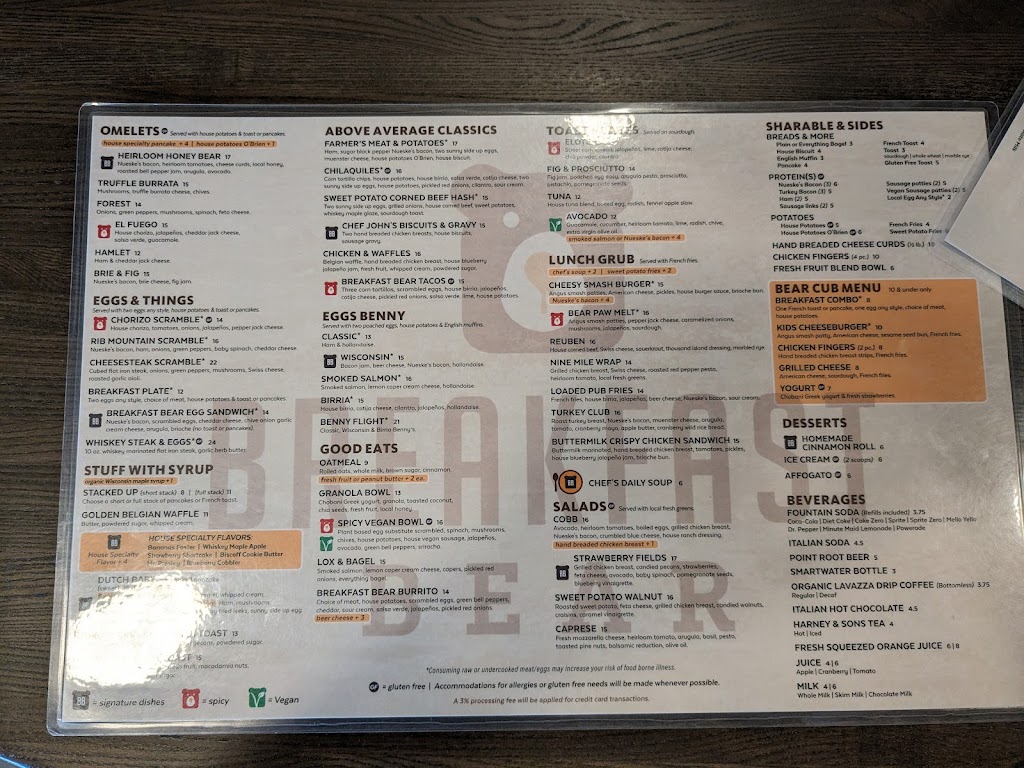 Breakfast Bear has become my favorite breakfast restaurant, and I always make a point of stopping when I’m in the area. Their menu is original so I always try to order a different dish, and haven’t found one that wasn’t delicious.