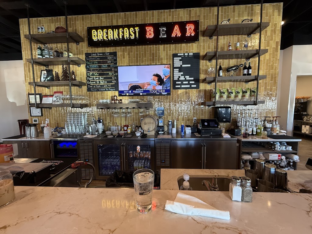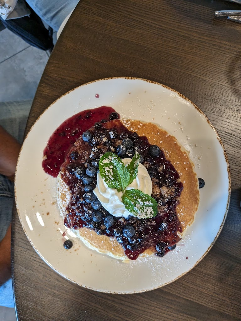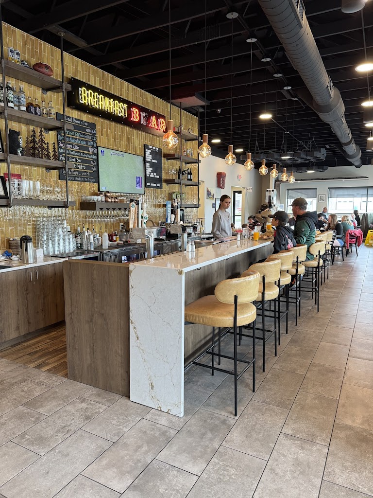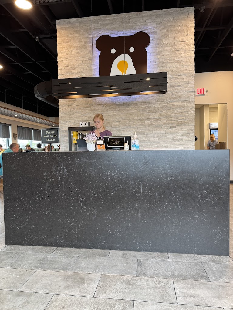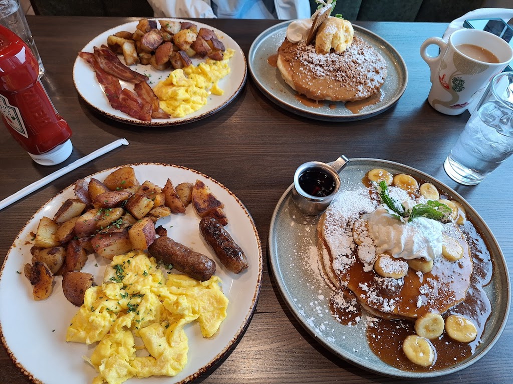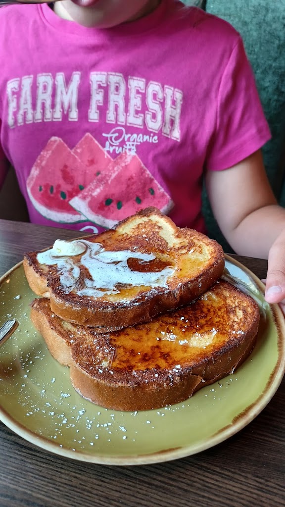 We had breakfast with family here recently. It has a nice spacious open feel, soft booths so the kids can easily eat without hurting themselves. The decor is nice and modern with soft little quirky touches (ie Bear in chair suspended from ceiling). Staff did a great job. The food was overall pretty great. I wasn’t a fan of the amount of caramel on my Dutch baby (my husband also said the sauce in his Bananas Foster French Toast was a little too much) and that the whipped topping was Cool Whip vs real cream, but now I know. Outside of that-the coffee, eggs, breakfast meats, and pancakes, French toast, etc. were all good. The fresh fruit was a very nice touch-it wasn’t just unripe melon like many restaurants have, it was a mix of berries, bananas and green grapes. I would definitely go again, but might ask for very light sauce (or on the side) if I order pancakes, French toast, etc.