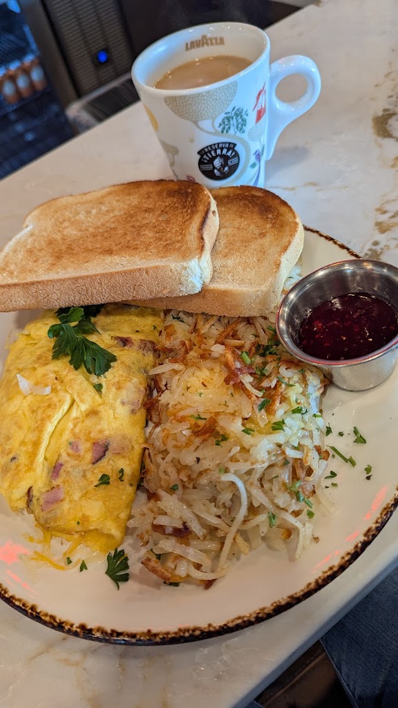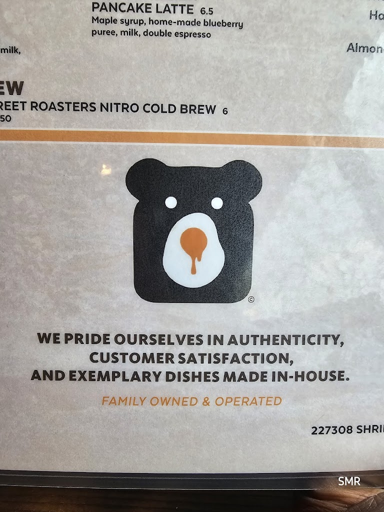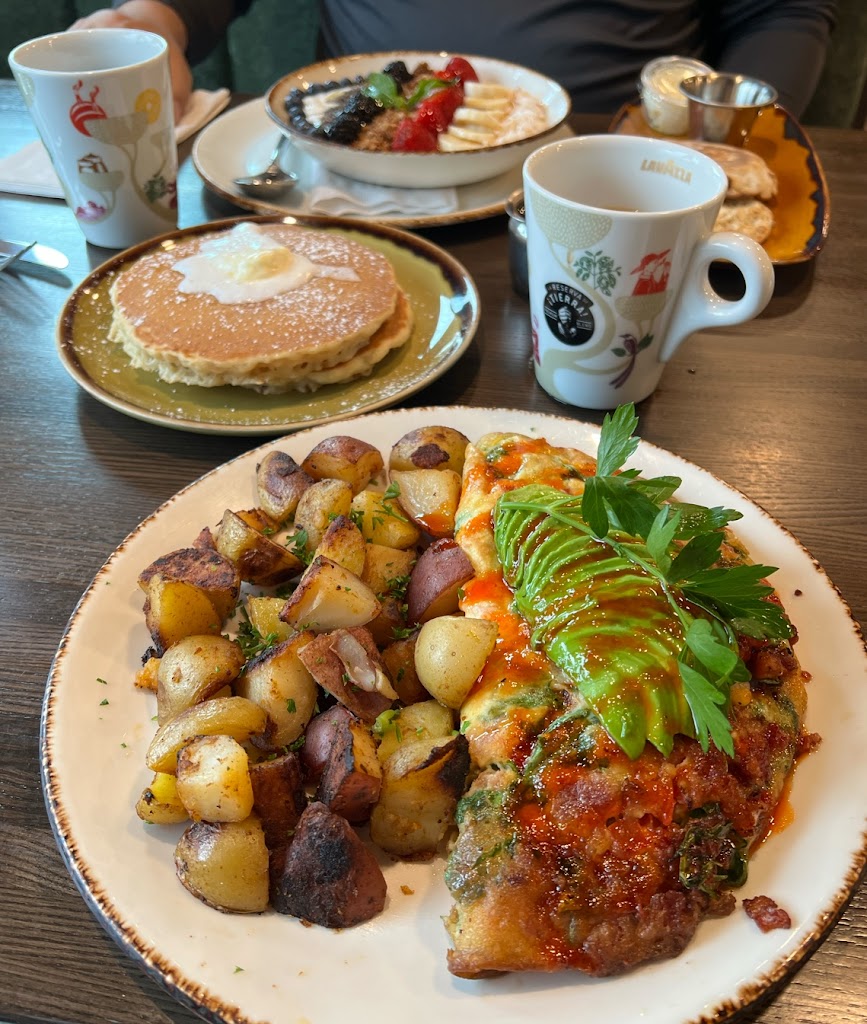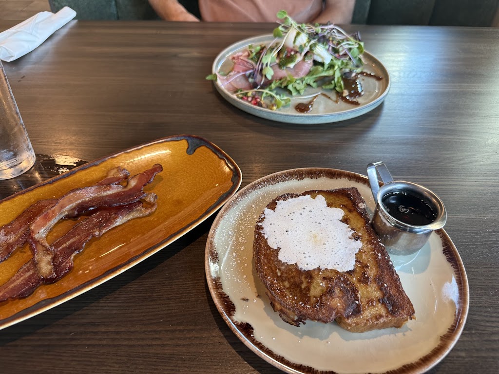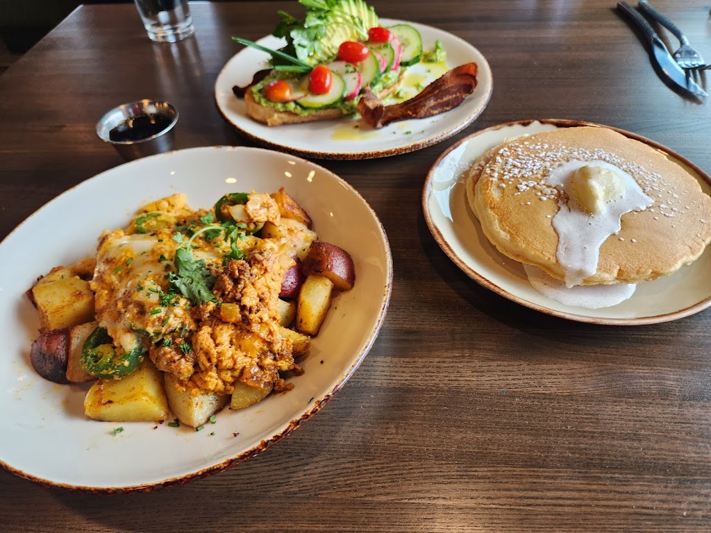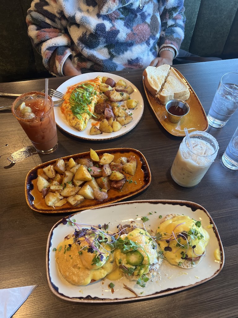 We had breakfast with family here recently. It has a nice spacious open feel, soft booths so the kids can easily eat without hurting themselves. The decor is nice and modern with soft little quirky touches (ie Bear in chair suspended from ceiling). Staff did a great job. The food was overall pretty great. I wasn’t a fan of the amount of caramel on my Dutch baby (my husband also said the sauce in his Bananas Foster French Toast was a little too much) and that the whipped topping was Cool Whip vs real cream, but now I know. Outside of that-the coffee, eggs, breakfast meats, and pancakes, French toast, etc. were all good. The fresh fruit was a very nice touch-it wasn’t just unripe melon like many restaurants have, it was a mix of berries, bananas and green grapes. I would definitely go again, but might ask for very light sauce (or on the side) if I order pancakes, French toast, etc.