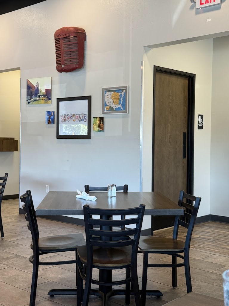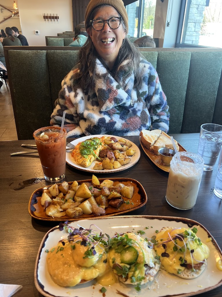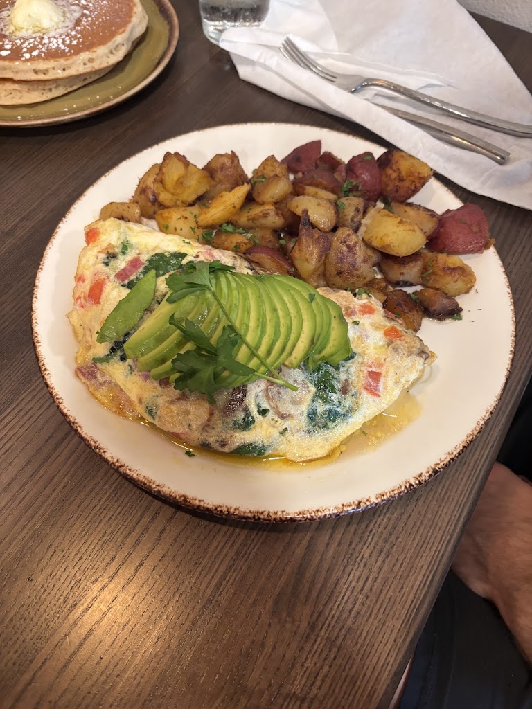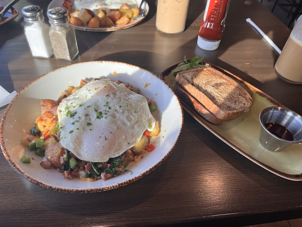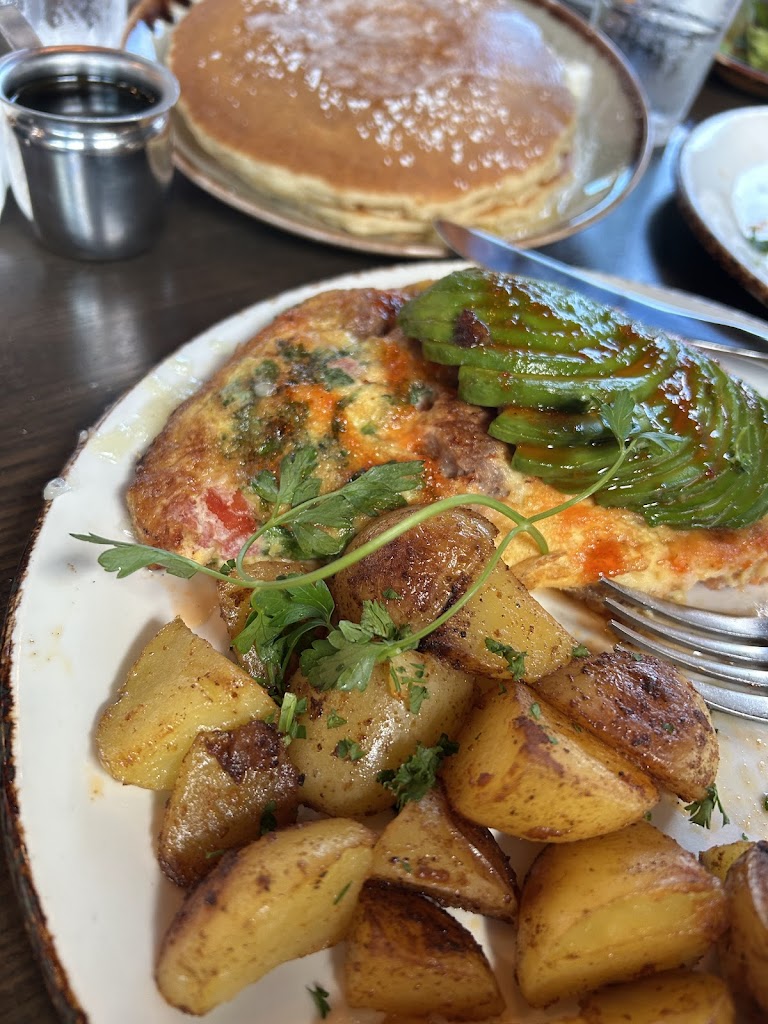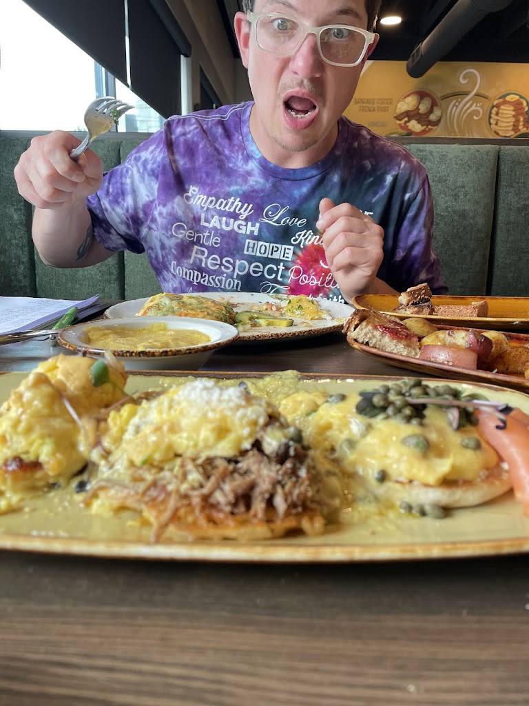 We had breakfast with family here recently. It has a nice spacious open feel, soft booths so the kids can easily eat without hurting themselves. The decor is nice and modern with soft little quirky touches (ie Bear in chair suspended from ceiling). Staff did a great job. The food was overall pretty great. I wasn’t a fan of the amount of caramel on my Dutch baby (my husband also said the sauce in his Bananas Foster French Toast was a little too much) and that the whipped topping was Cool Whip vs real cream, but now I know. Outside of that-the coffee, eggs, breakfast meats, and pancakes, French toast, etc. were all good. The fresh fruit was a very nice touch-it wasn’t just unripe melon like many restaurants have, it was a mix of berries, bananas and green grapes. I would definitely go again, but might ask for very light sauce (or on the side) if I order pancakes, French toast, etc.