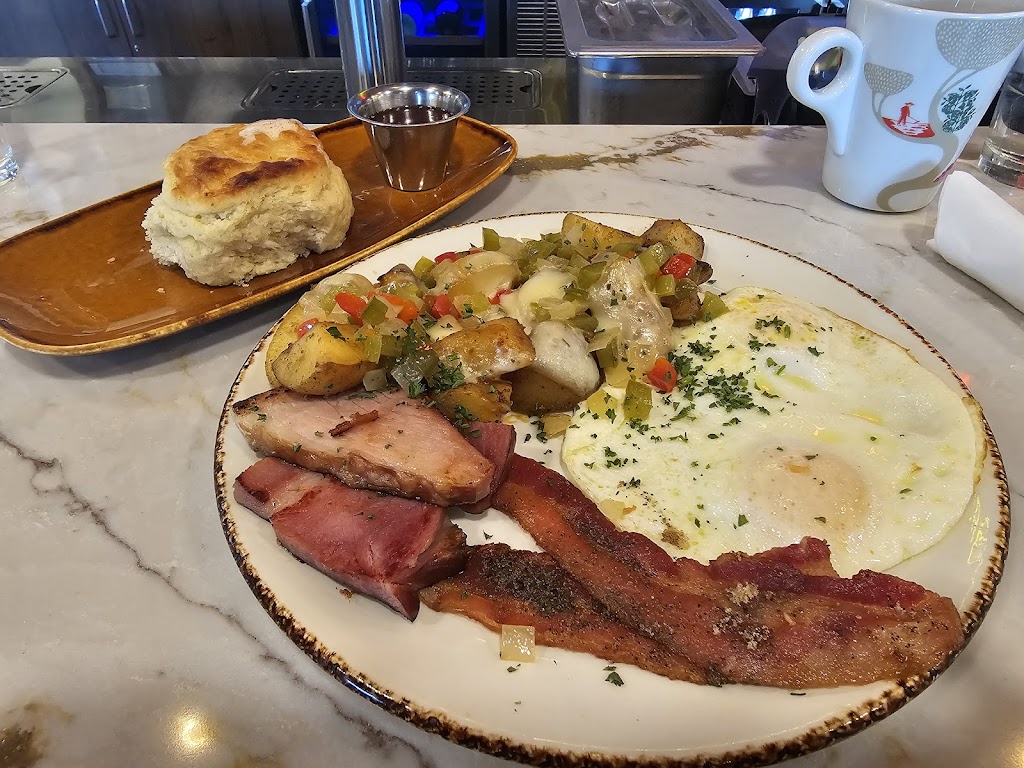 I for the farmers meat breakfast, wife for the Benny sampler.