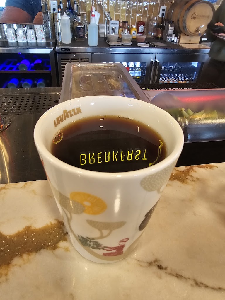 Excellent food, bar staff were very friendly and gracious. Coffee was amazing. Wife for the dobbilo, I got black coffee. Both were Excellent. OJ is fresh squeezed.