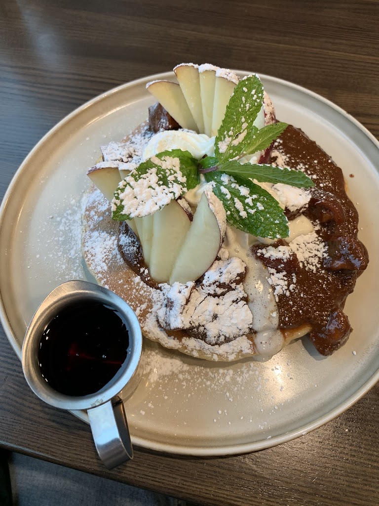 Had the “Hamlet” ham and cheese omelet with the pancakes upgraded with apples and caramel sauce. What a delight! Great food and the service was spot on! Beautiful presentation of the cakes. Definitely worth a stop!