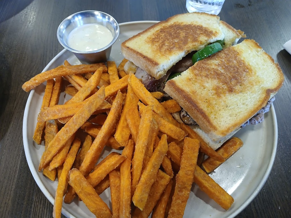 Food was hot and fresh. Patty melt was a little dry, as was my husband's wrap. Could solve it with a bit more sauce or cheese. Overall, it was fine.