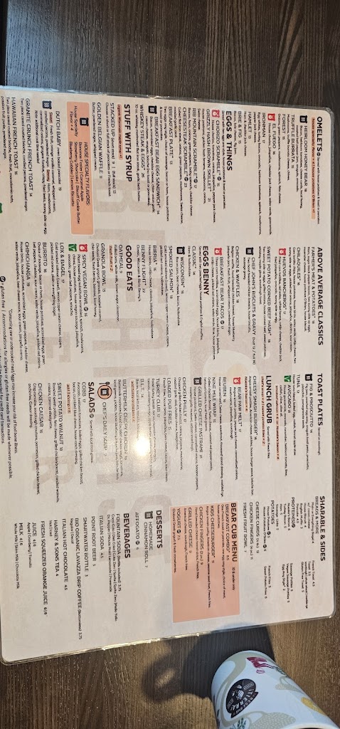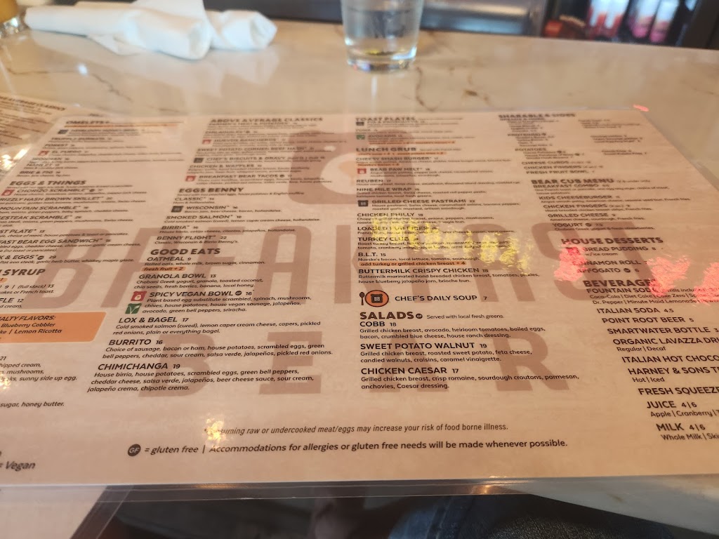 just finishing up a "brunch" at the BEAR. the food was delicious and the presentation was perfect. hats off to the cook. our waitress was extremely nice, energetic, positive, and helpful. Great job Bianca!!! my favorite thing was the coffee. Lavassa is perhaps the best coffee I may have ever had. Definitely will be a repeat customer here.