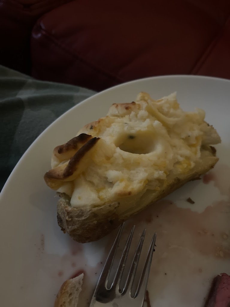 Temp of 145, but was disappointed to find that this isn’t twice baked but is a baked potato, not completely done with some cheese instant mash on top. Just sad and disappointing