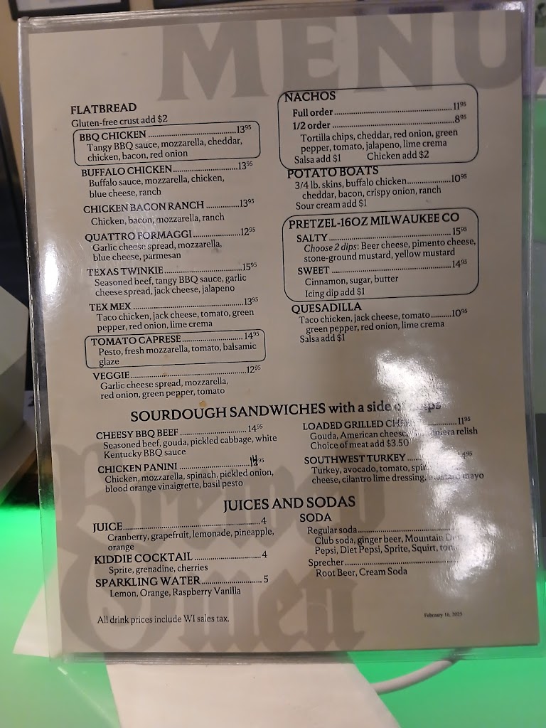 Great selection of beers, food is outstanding. We had the nachos and two of the flatbreads. Nice outdoor patio along the Rubicon River. Inside space is equally nice, everything is new and clean. Staff was very friendly. Highly recommended - go and check it out!