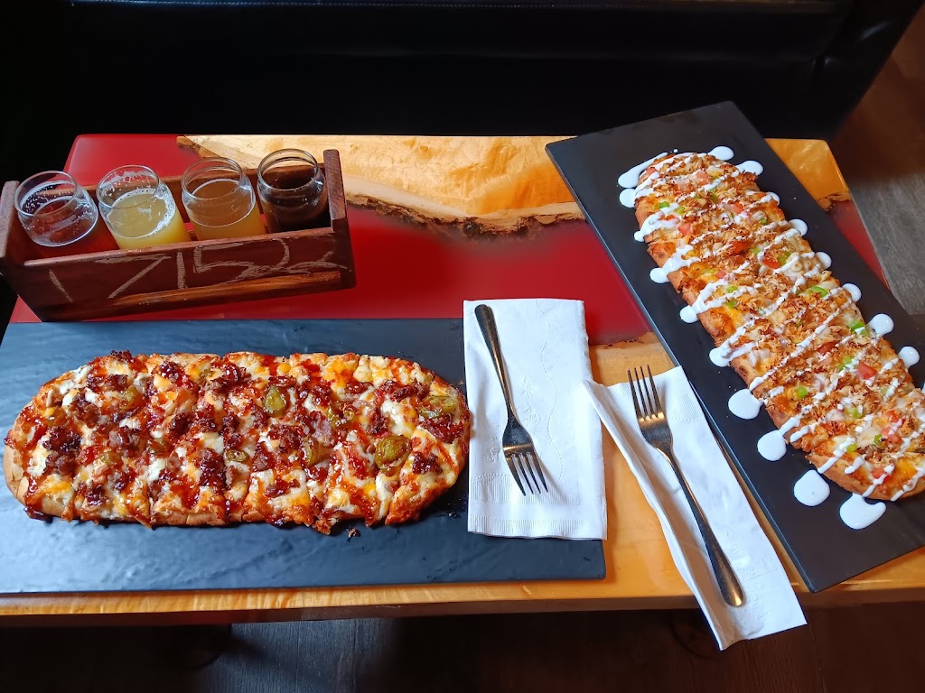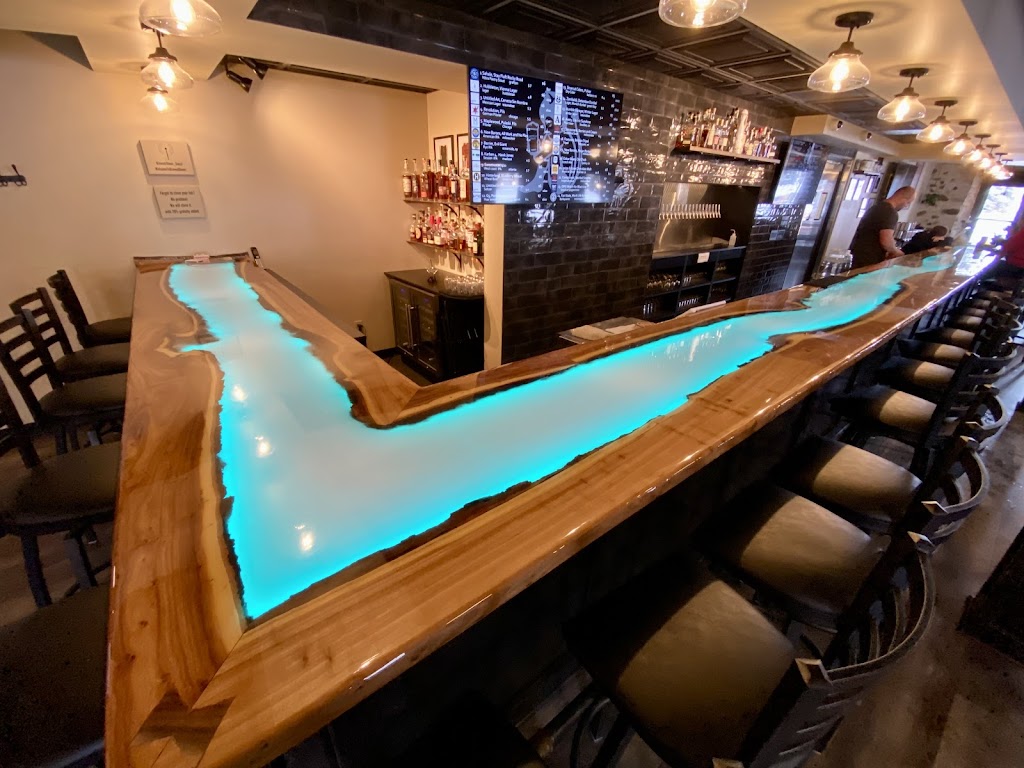 A relaxing beer tasting family lounge. Not a bar. Excellent flatbread and rotating local beer options. Patio seating by the river and waterfall. Cut back on your phone addiction with game and trivia nights.