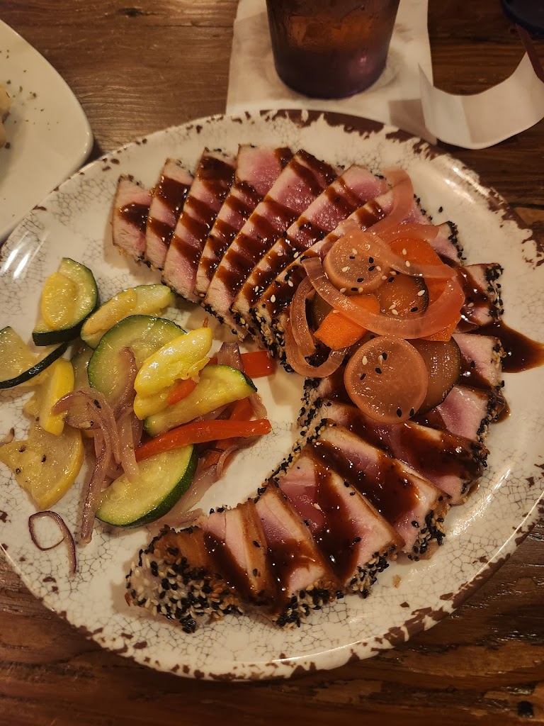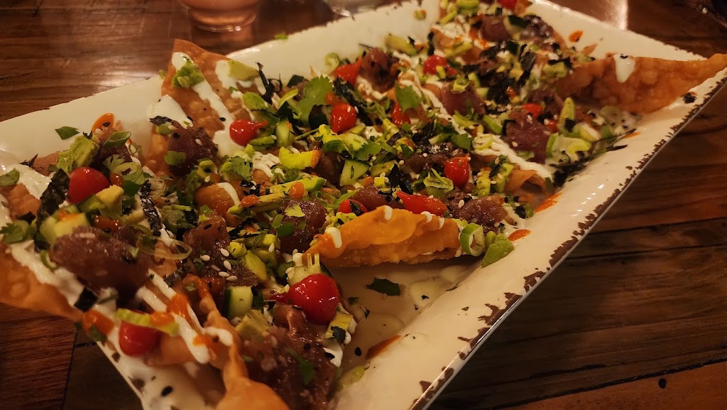 As for the food, I can’t get enough of their Poke Nachos. They’re delicious and come topped with these tiny, sweet red peppers called Sweety Drop peppers that really elevate the dish.