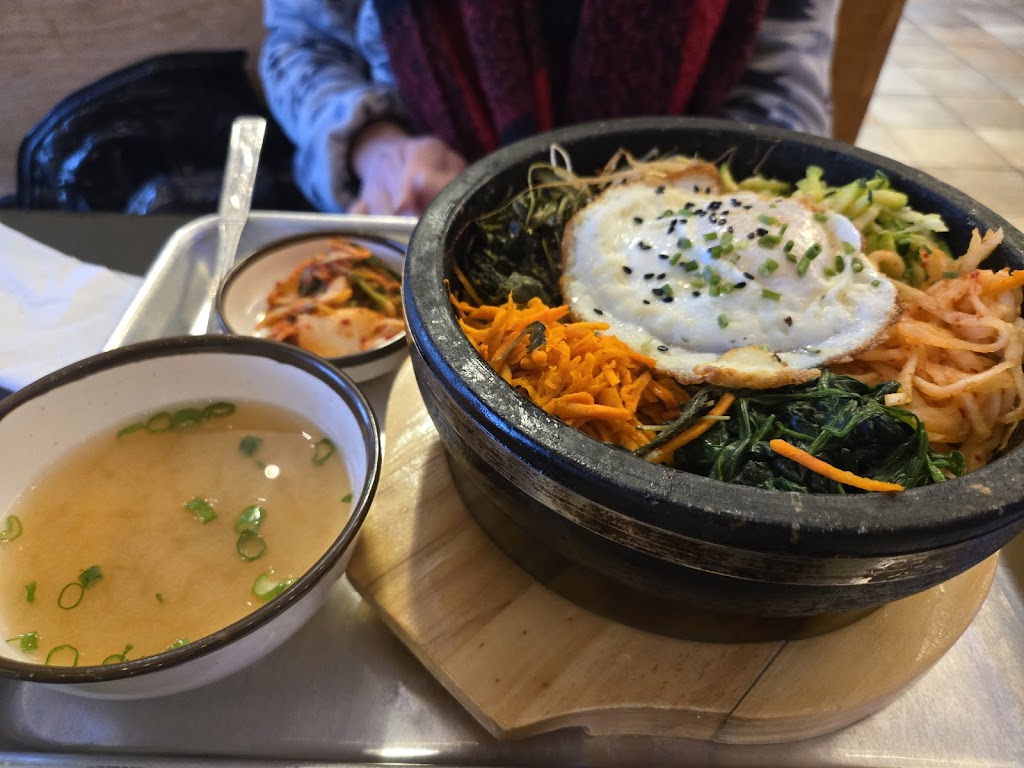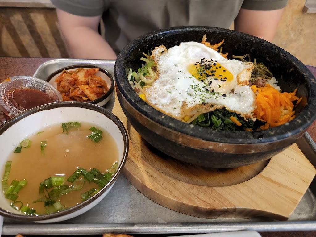 Food: T'was alright. I've had authentic Korean food in Boston & this is not what I remembered. The food was not as great as I remembered. Bibimbap was mediocre. Pancakes were not very flavorful. Even the bountiful sides weren't as I liked so much about K-food. One might be disappointed if this is their first experience with Korean food.