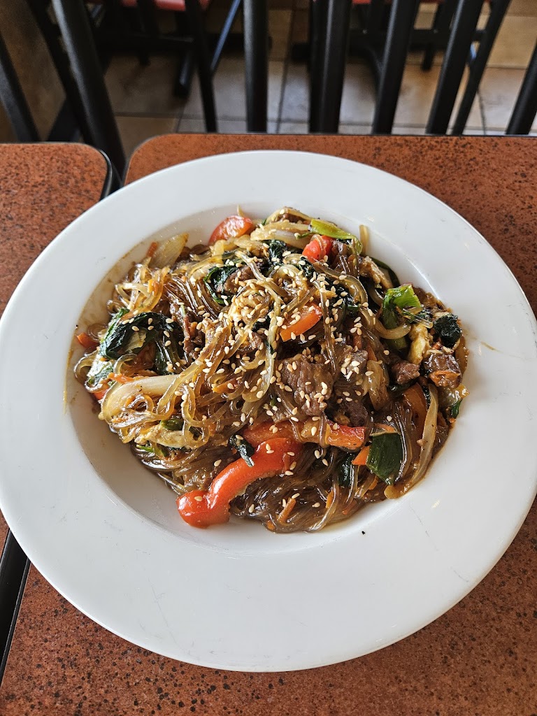 The kimchi pancakes were delicious, we added sour cream on top! The spicy pork meal and Japchae were also SO good! Will be coming back for more!
