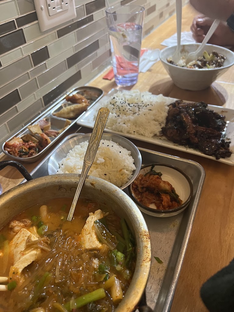 I ordered the seo-teok, kimchi pancake, bibimbap, and bossam. The seo-teok had a tangy-sweet taste with a little crisp from the rice cake. Kimchi pancake was okay, would have loved it if it was thinner and little more crisp. Bibimbap (stone-pot) was fantastic with the variety of vegetables and meat! Bossam was good, wish there were more vegetables (lettuce) especially with the amount of meat given. Overall, I give this restaurant a 3.5-4 star. One thing I would suggest is to give the food a little more kick of spice since everything I have tasted were sweet.