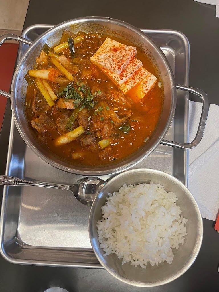 Got the pork kimchi jigae soup that comes with a side of rice. I get that it's kimchi soup but there was soooo much kimchi lol and I counted my pieces of meat, there was only 4 cube sized pieces in there! 🥲