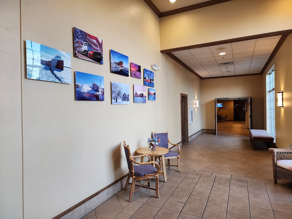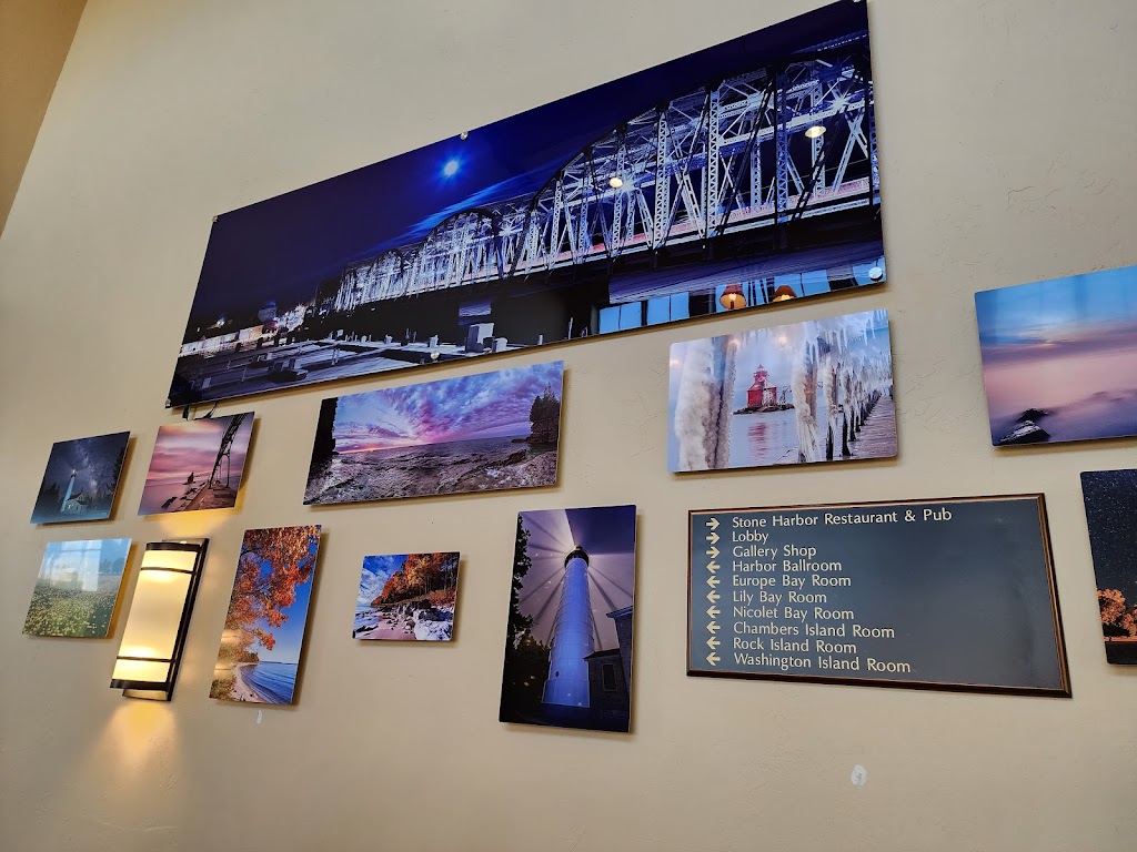 I went here for a business breakfast. The room was large enough to probably hold at least 150 people. Outside was a view of the bay of Sturgeon Bay. They started us with cherry mimosas, breakfast rolls, and yogurt with fruit and granola. The meal was quiche, hash browns, bacon, and a strawberry. The staff were almost inconspicuous and very quiet as they served us and then picked up our plates when we were done. The room had 3 screens so that everyone was able to see, and the sound system worked perfectly. This is a great venue for business meetings and conferences!