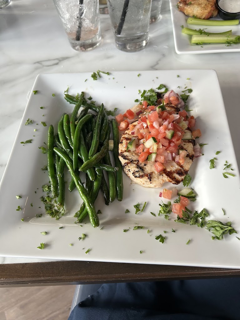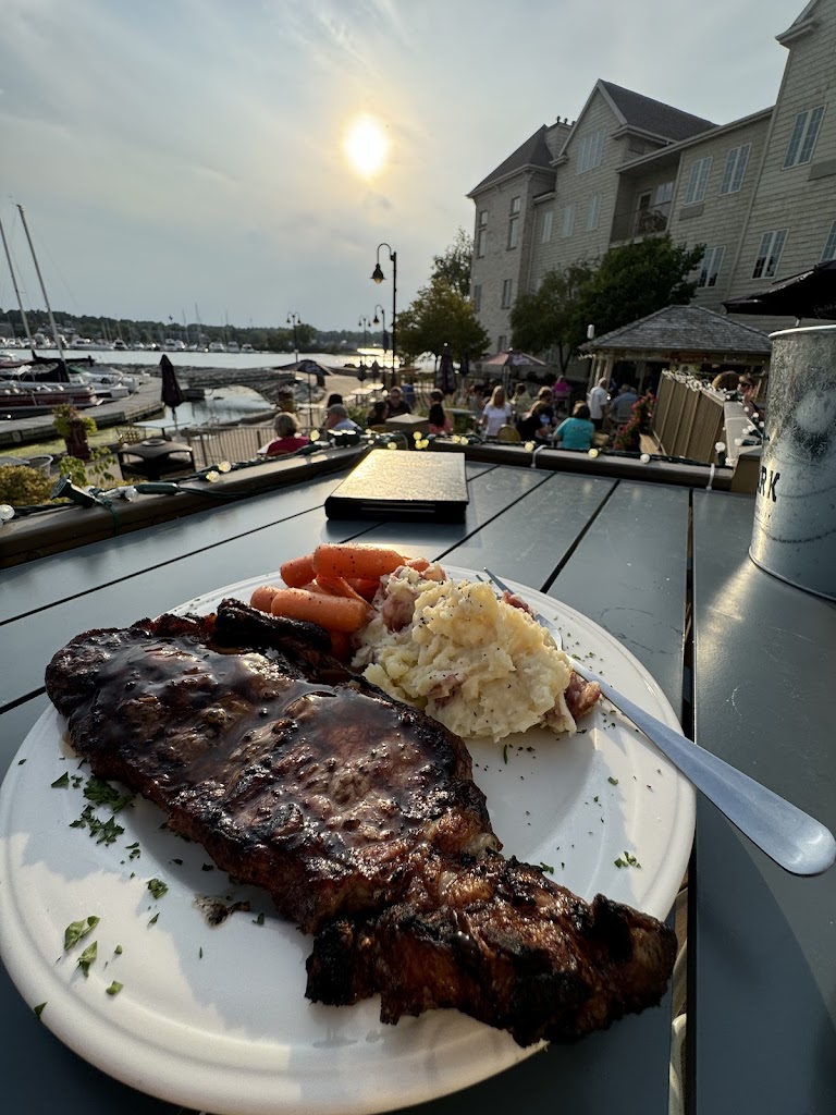 I had a steak, garlic mashed potatoes, carrots and salad, I was not very impressed because there was no flavor on anything on my plate. I had dinner at other restaurants in the area Mexican and Italian that were very flavorful. The location is amazing and they have great indoor and outdoor seating. Very beautiful and great service.