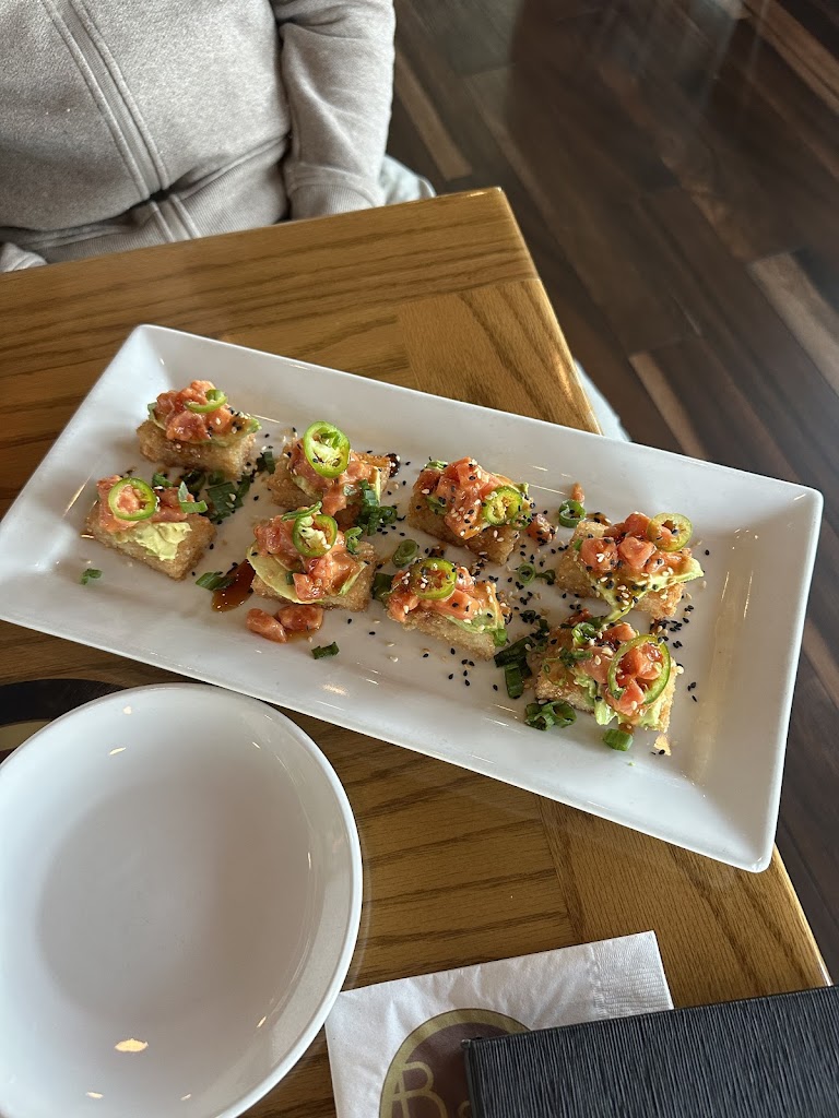 Started with ahi tuna bites, nicely spicy with fresh serrano slices, just a bit of sriracha mayo and avocado to balance the heat.