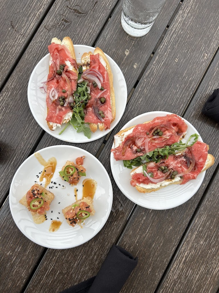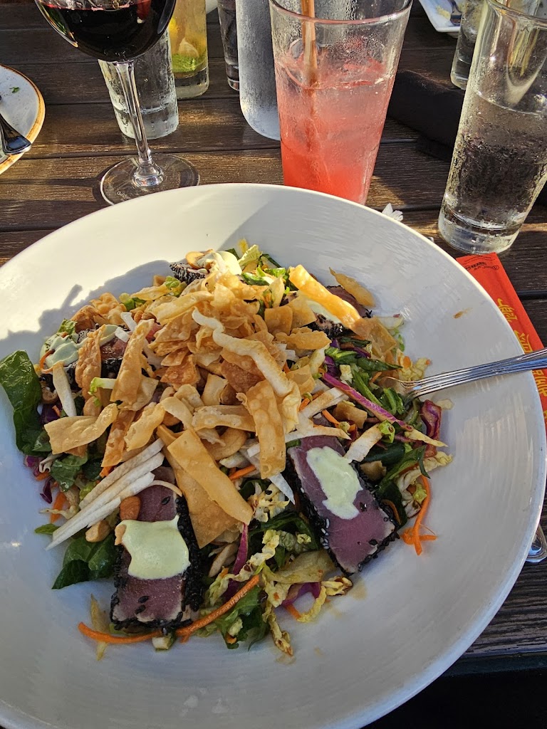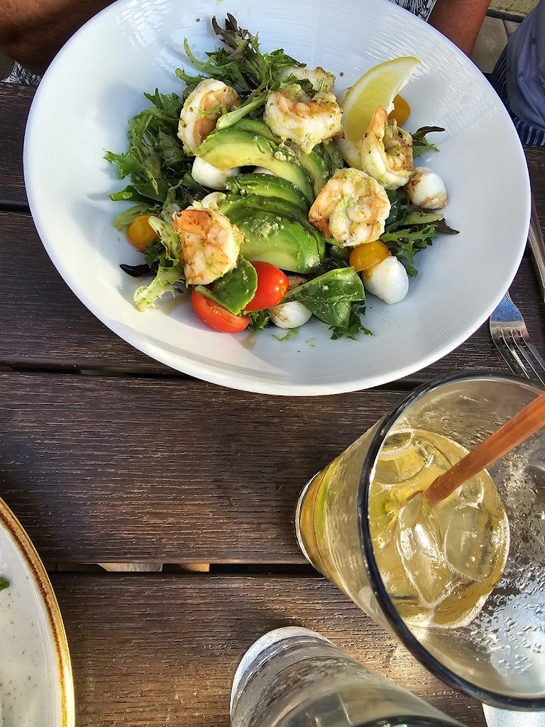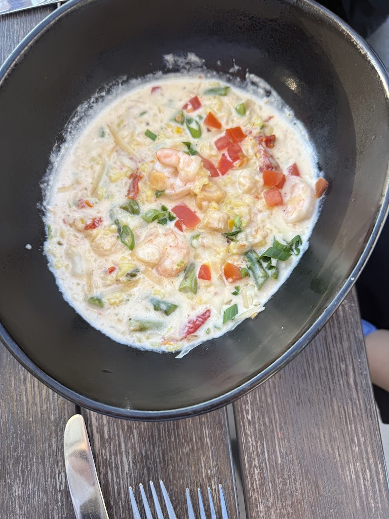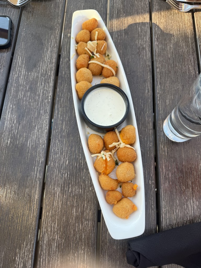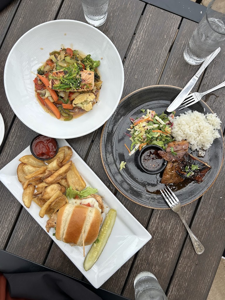Delicious food served on a patio next to the river. It was a beautiful day. Service was excellent.