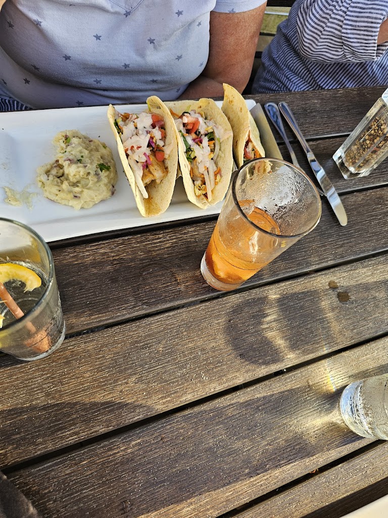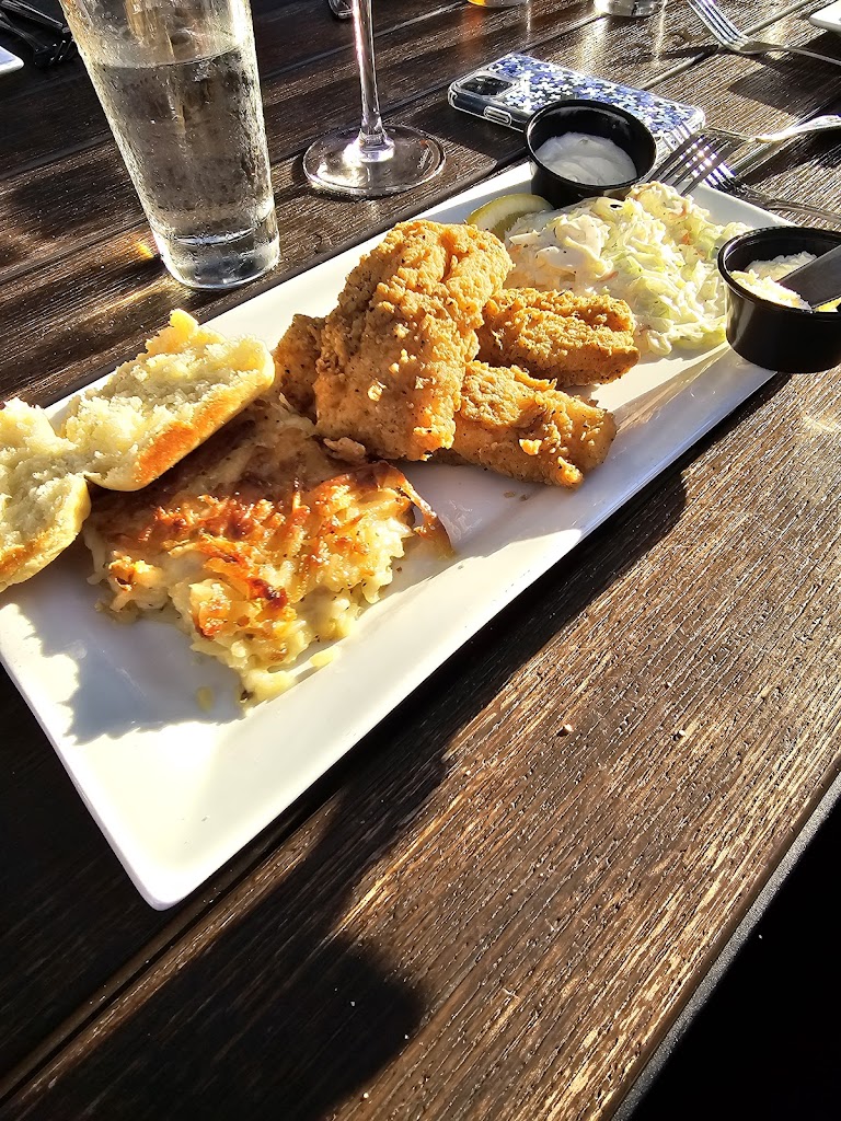 Was looking forward to a good fish dinner but I was terribly disappointed! The fish had a very odd/strange taste to it, very unappetizing! I had all I could do to eat one of the 3 pieces. I gave a piece to my wife and she agreed with me. Not sure if it was the fish itself, or something about the preparation, or some seasoning/spice that gave it that flavor? It looked and smelled fine and the batter was ok. Everything else about our night I can't complain about. Service was excellent, atmosphere on the patio was relaxing, good music to listen to, our drinks were great, and all the sides were good. But with the main course so disappointing I can't give a positive review. I'll come back in the future for other food but never will I order fish again!