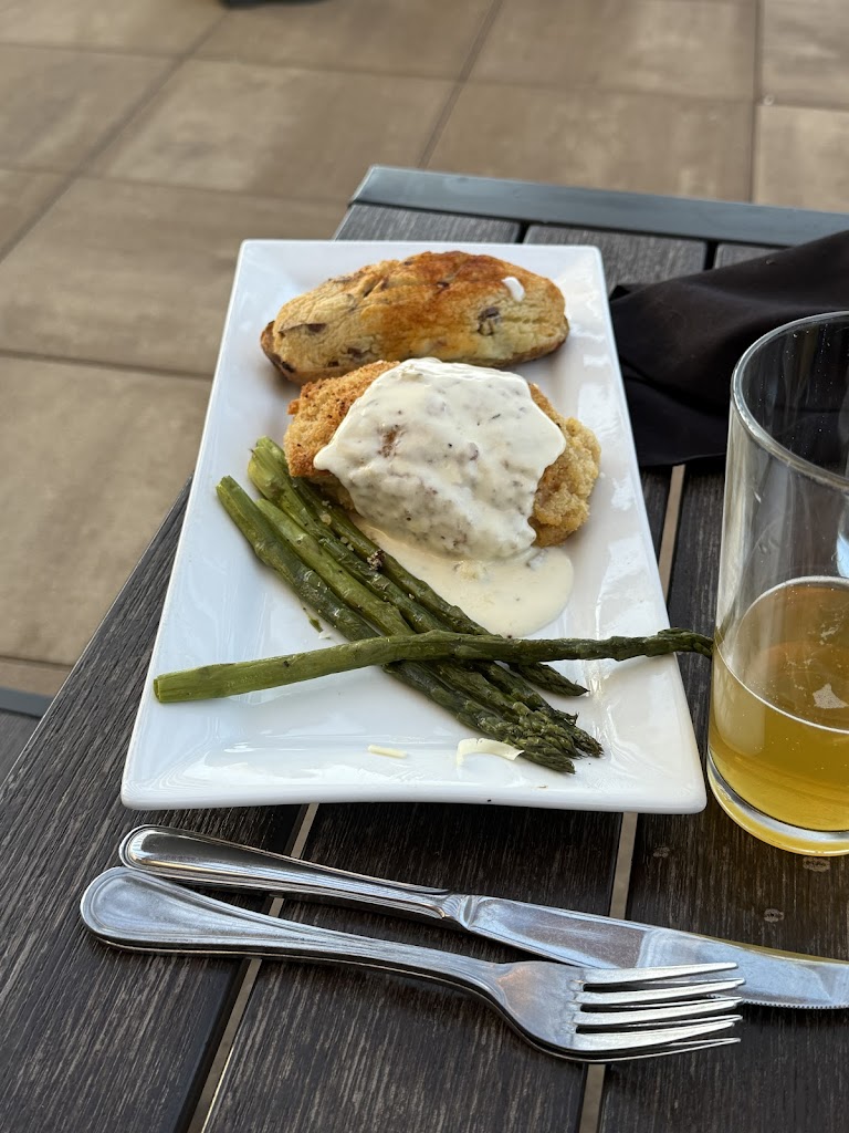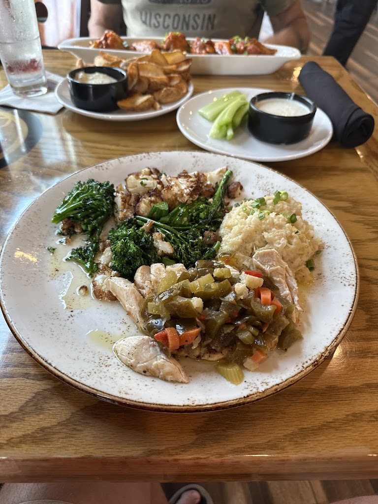 Our entrees were all excellent - the wagyu burger for my 15 year old, and chicken pasta for my 13 year old. They both enjoyed them. I had a red snapper special over Cajun rice with andouille and vegetables and a Dijon cream sauce. The Dijon sauce was unnecessary, but overall the dish was great. The highlight was my partner's "Veggie Centricity" - roasted cauliflower and Brussels sprouts with polenta and a Parmesan cream sauce and balsamic reduction. She said it was one of the best dishes she ever had.