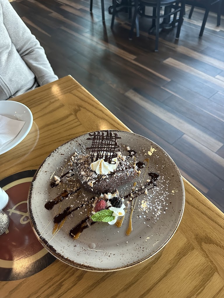 We usually skip dessert but our server (Layla? Lila?) was outstanding and she did a great job selling the “better than chocolate” treat. The dark chocolate + caramel + toffee bits was delicious and huge. Super rich and a couple forkfuls was plenty.