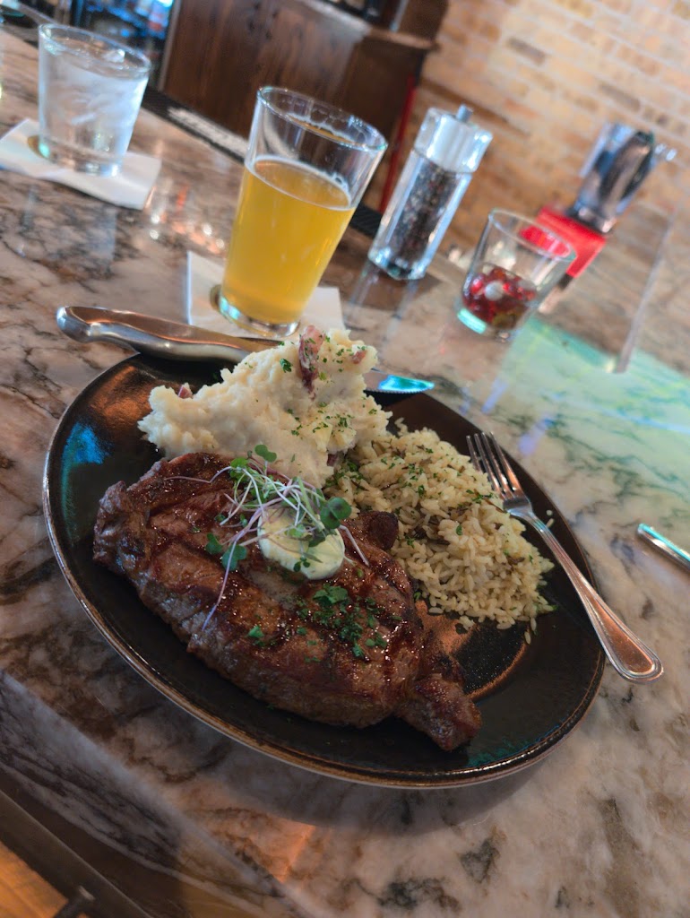 What a disappointment. Husband and I were on vacation and choose this as our one "expensive" dinner. We didn't mind the prices but the food was awful. Our waitress was sweet but maybe new? I asked for a "fruity" moscoe mule. She left and came back with the menu showing me a lemongrass mule that was on the non alcoholic menu but said they could make it as a regular mule too. I ordered that. When it came it was non alcoholic. Fine, but I would never have ordered a $8 non alcoholic drink. My husband got the ribeye I got the fillet mignon. Our order took awhile to come out they said because they over cooked his and had to redo it. (They gave us 15% off because of that) no problem. When the did come out,his was 14oz and about 8oz was pure inedible fat/gristle. The other half he could eat was so bland he had to add a ton of pepper. Also, we had to cut our steaks with butter knives because no steak knives are provided.My steak was way over cooked. I still ate it but it had no flavor. These both were $48 steaks each. You can tell they order the cheapest steaks possible, which is fine but don't charge $48 for them then.I wouldn't eat there again even if it was free. Atmosphere reminded me of a chain restaurant like Applebee's. Baked French onion soup was the best part of the meal.