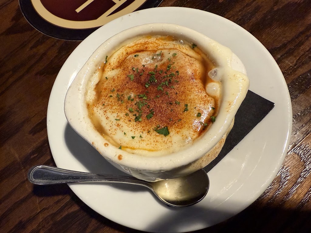 The Thai Chicken Lettuce Wraps are my go-to appetizer here, and the Bacon Wrapped Dates stuffed with goat cheese and almonds are also excellent. I’ve also tried the French Onion Soup, which was just okay, and the Seared Ahi Salad, which I would not recommend — it was terrible. One of the bowls I tried was fine, but nothing memorable. When I come here now, I stick with the appetizers.