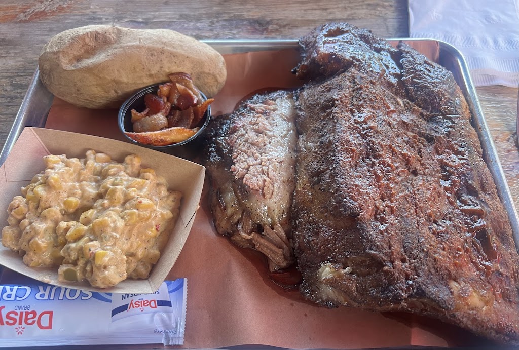 I gave it 5 Stars, but my wife would have given in 1 Star. My order was excellent! I order the two meat plate. Extra fatty cut Brisket and Ribs. Just awesome! The bark was perfect, the meat to fat ratio creates a super tender juicy feast. I was excellent. The side of Creamy Corn was delish with a nice spicy flavor. The baked potato was cold and, well - awful.