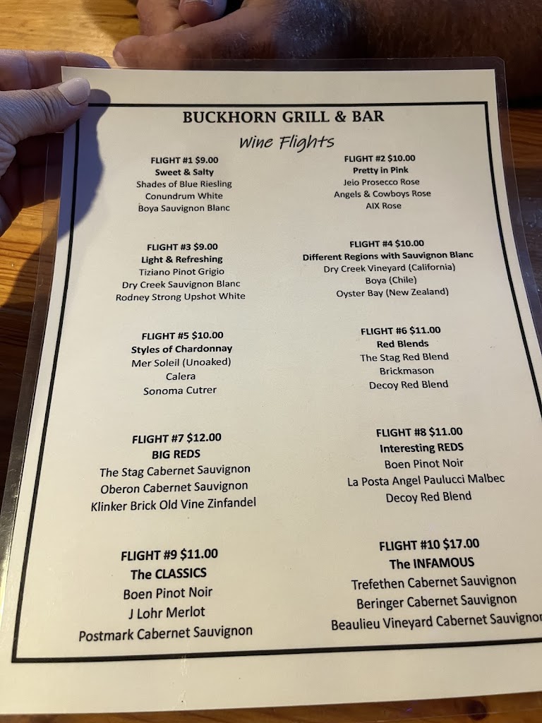 We visited Buckhorn Grill last Saturday around 11pm. The service was great. The bartender made time to tell us about the area and things to do. He even made sure to prioritize getting our toddlers food out first and my ask for plastic silverware for my little one.