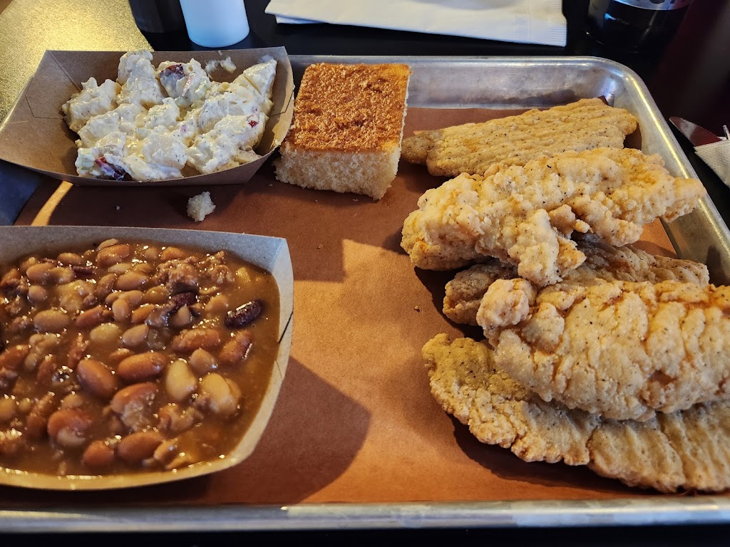 Stopped in here now 2 times. The food is delicious. Great BBQ food. The portions are huge. I loved the chicken tenders. The multiple sauce options were great.