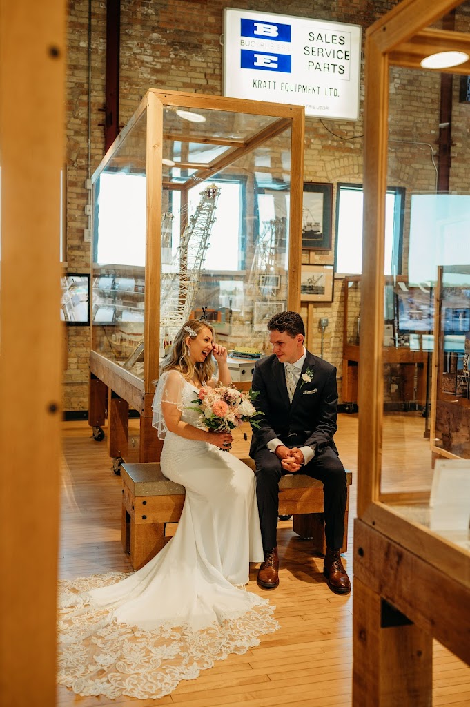 The bride and groom chose to have the cocktail hour upstairs in the museum area which was a very unique location. This space offered cozy areas for groups to converse and sip on cocktails and seconded as entertainment as you browsed the history of Bucyrus. There were a handful of very knowledgeable and friendly museum docents there to answer questions and provide mini tours.