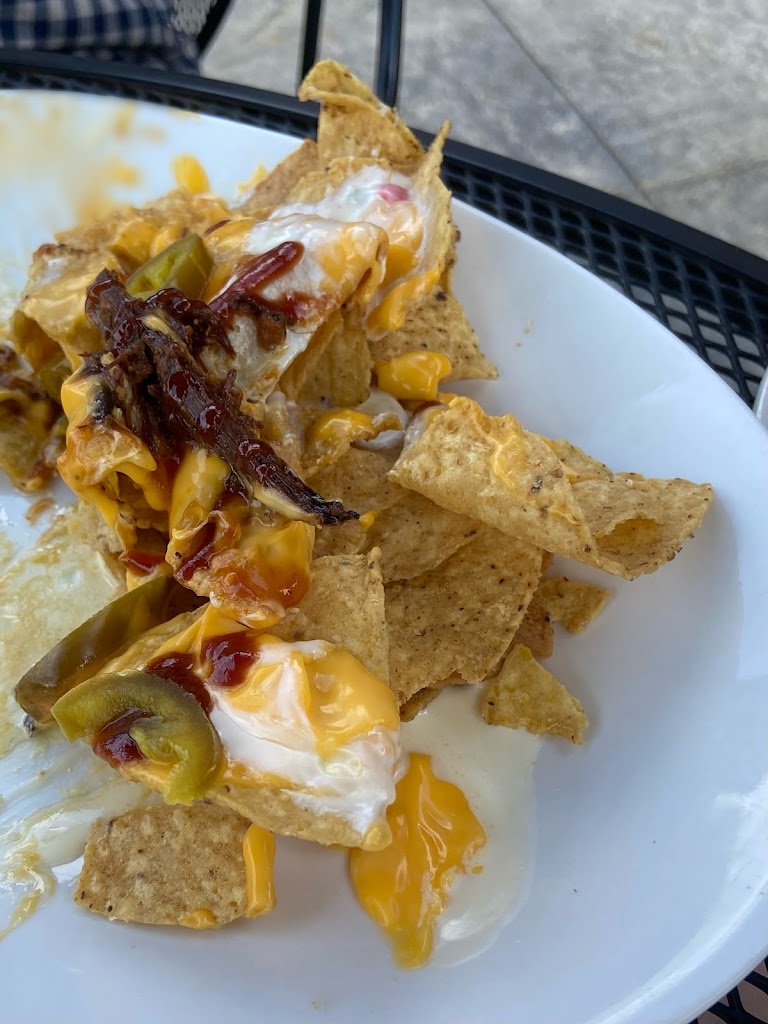 Sat outside on a beautiful early fall evening. The place was packed but the servers were really pleasant and trying hard to keep up and succeeded. The chicken nachos were crisp and flavorful. The coffee stout was so good I had a second.