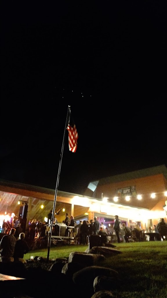 Open to the public bar and restaurant located at Rivers Edge Campground. Restaurant, Outdoor dining, Axe throwing.