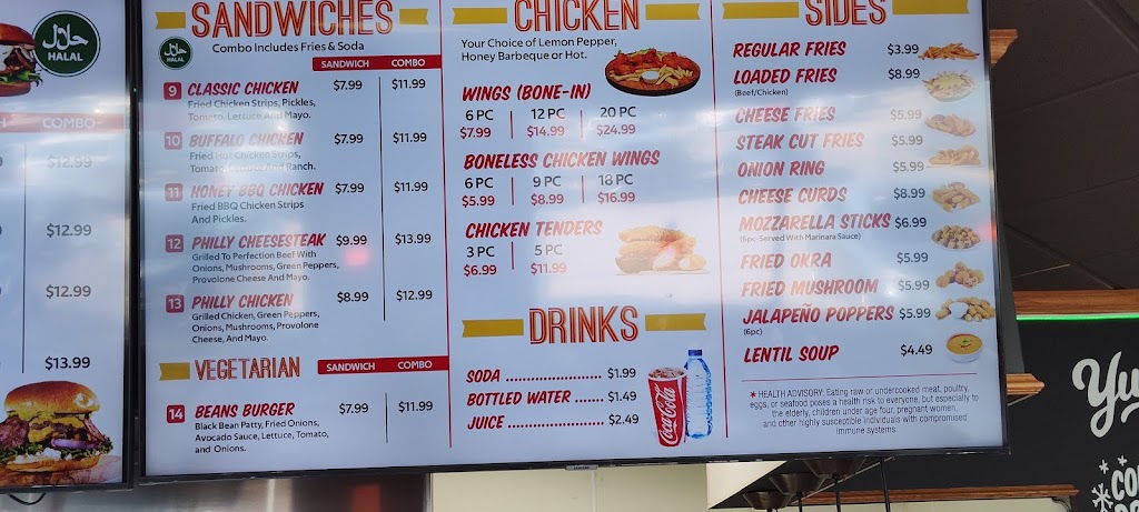 Got the Buffalo and Honey BBQ chicken burger combo and boneless wings . Combo was only 13.99 and burger was big and fresh with a generous amount of good quality fries. Many drink options too including lemon and mint which I would recommend. Look forward to trying the meat burger next time. Owner was really nice to us and will definitely be there again.